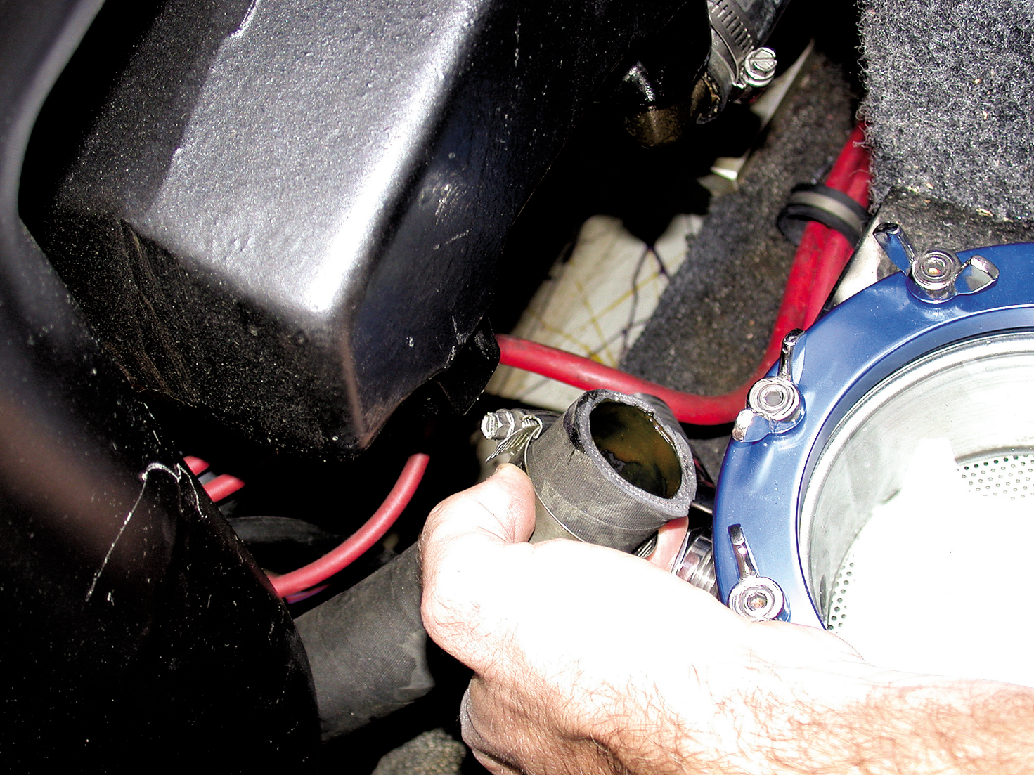 With the boat running, the incoming water is strained before it goes through the rest of the system.