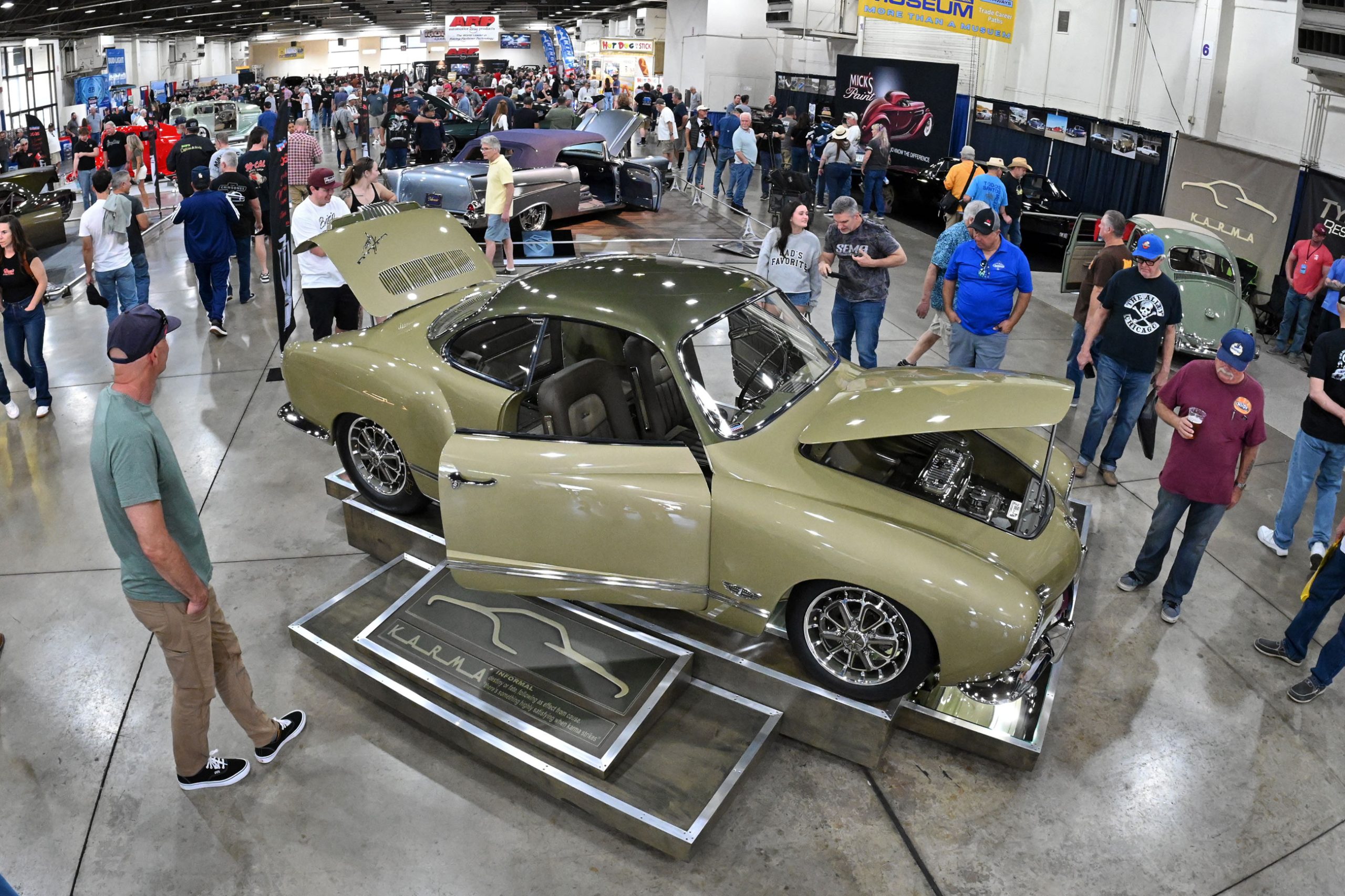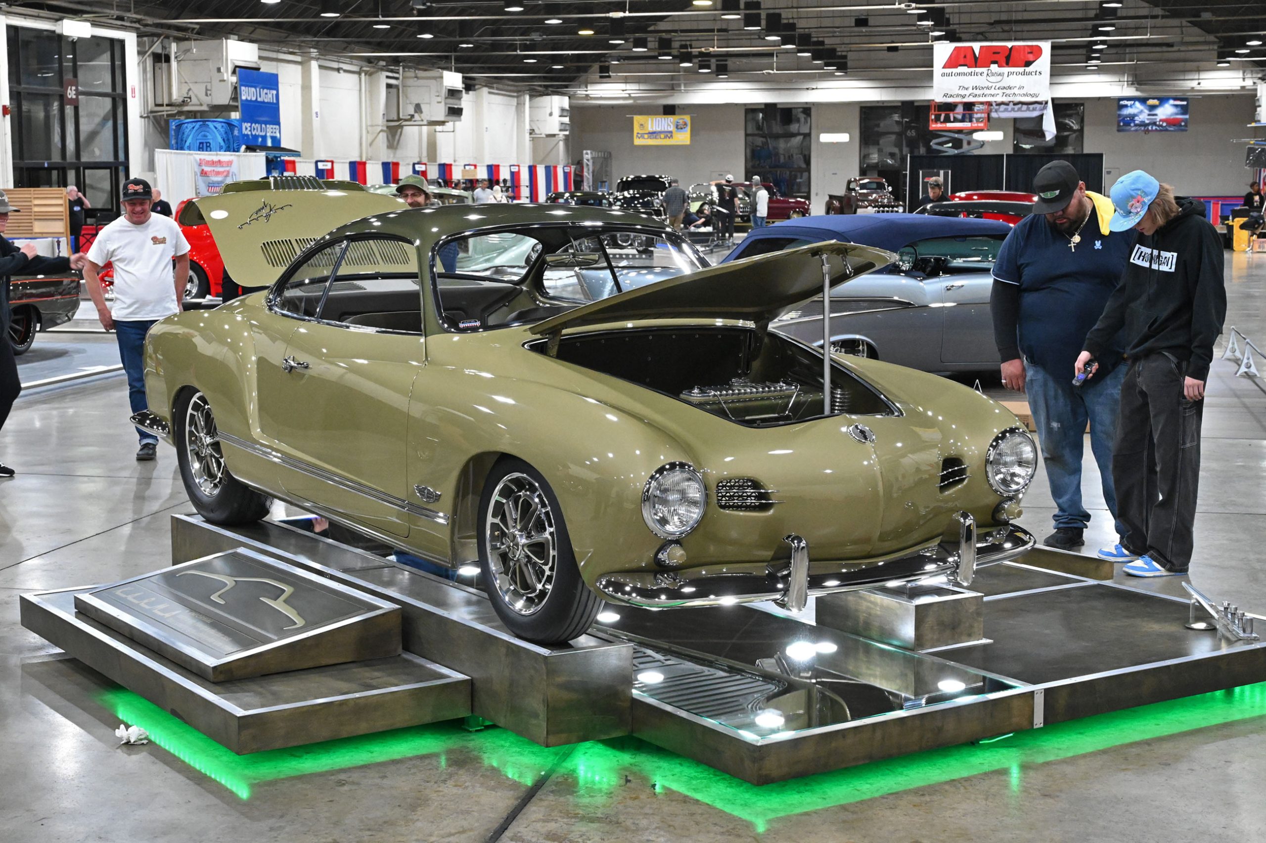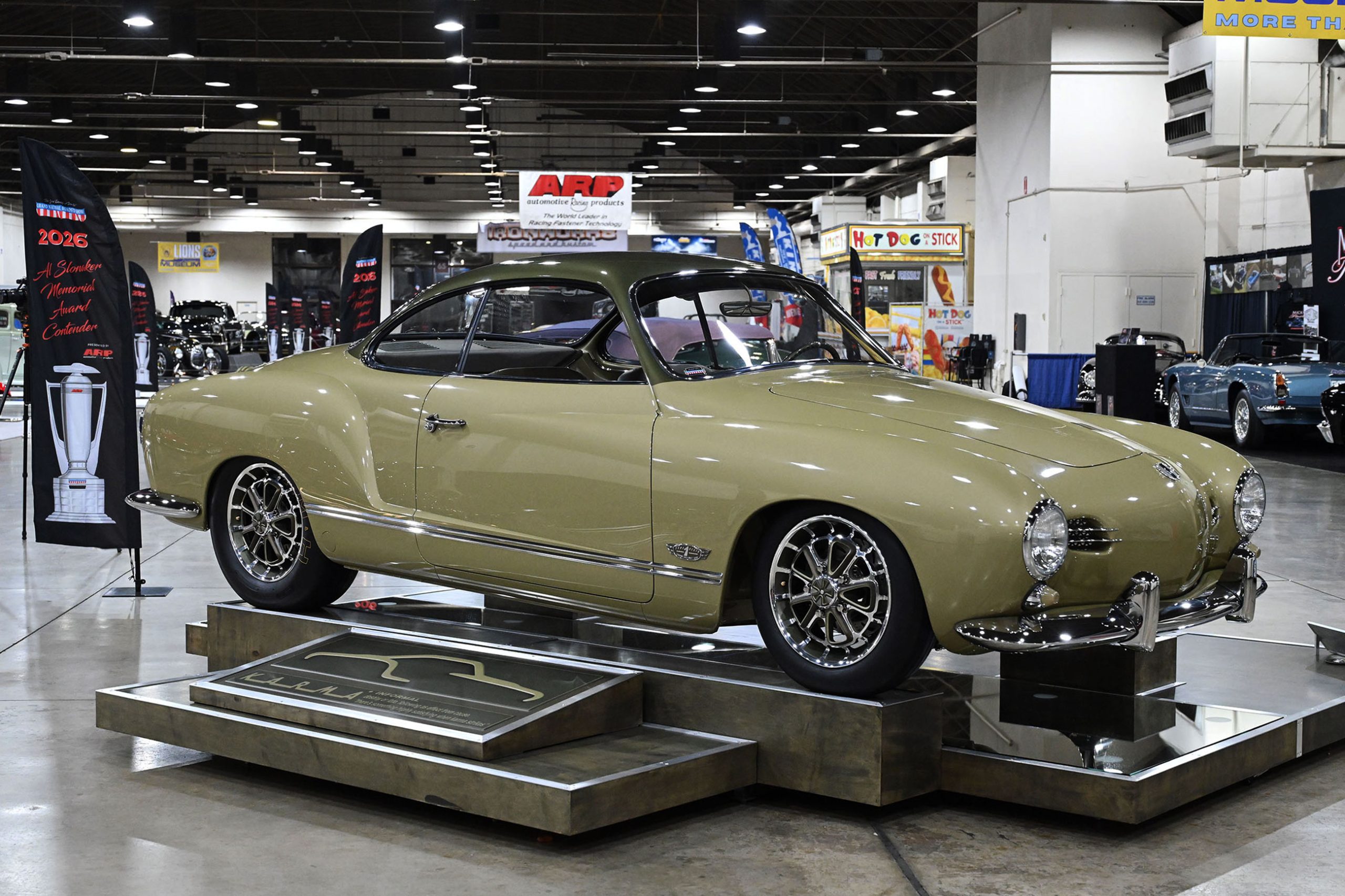 Dennis Troggio’s Karmann Ghia, built by Type One Restorations, outshines the field at the 2026 Grand National Roadster Show.