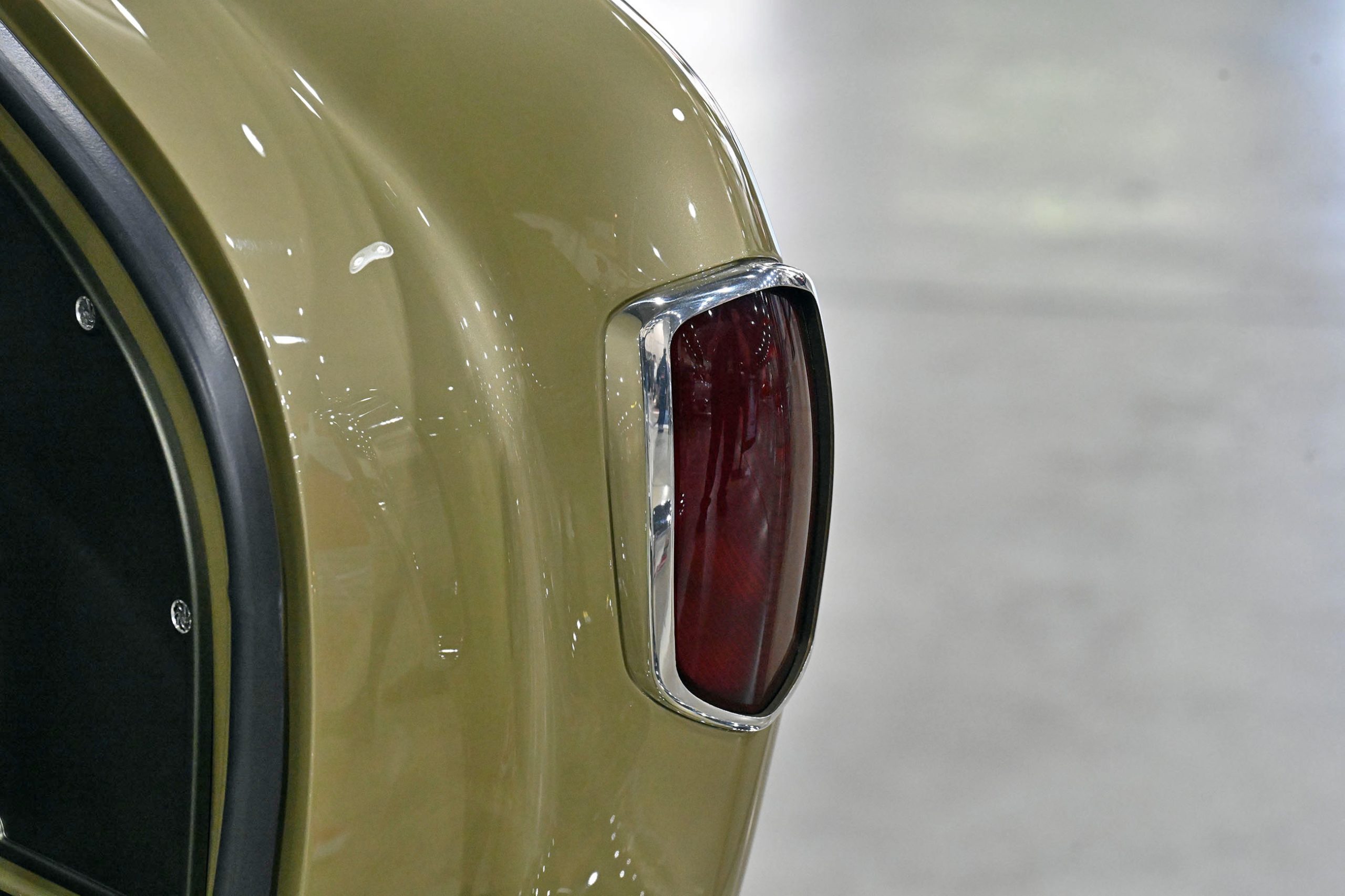 Even the bumpers, guards, horn grilles, and trunk latch mechanism were fabricated from scratch, integrating seamlessly into the body. Custom tail light pockets were machined in-house, reinforcing the theme that nothing here was off-the-shelf or accidental.