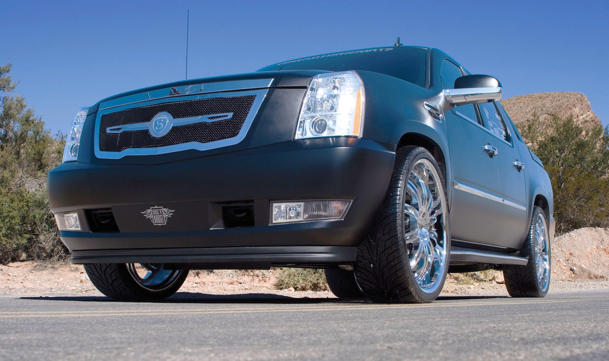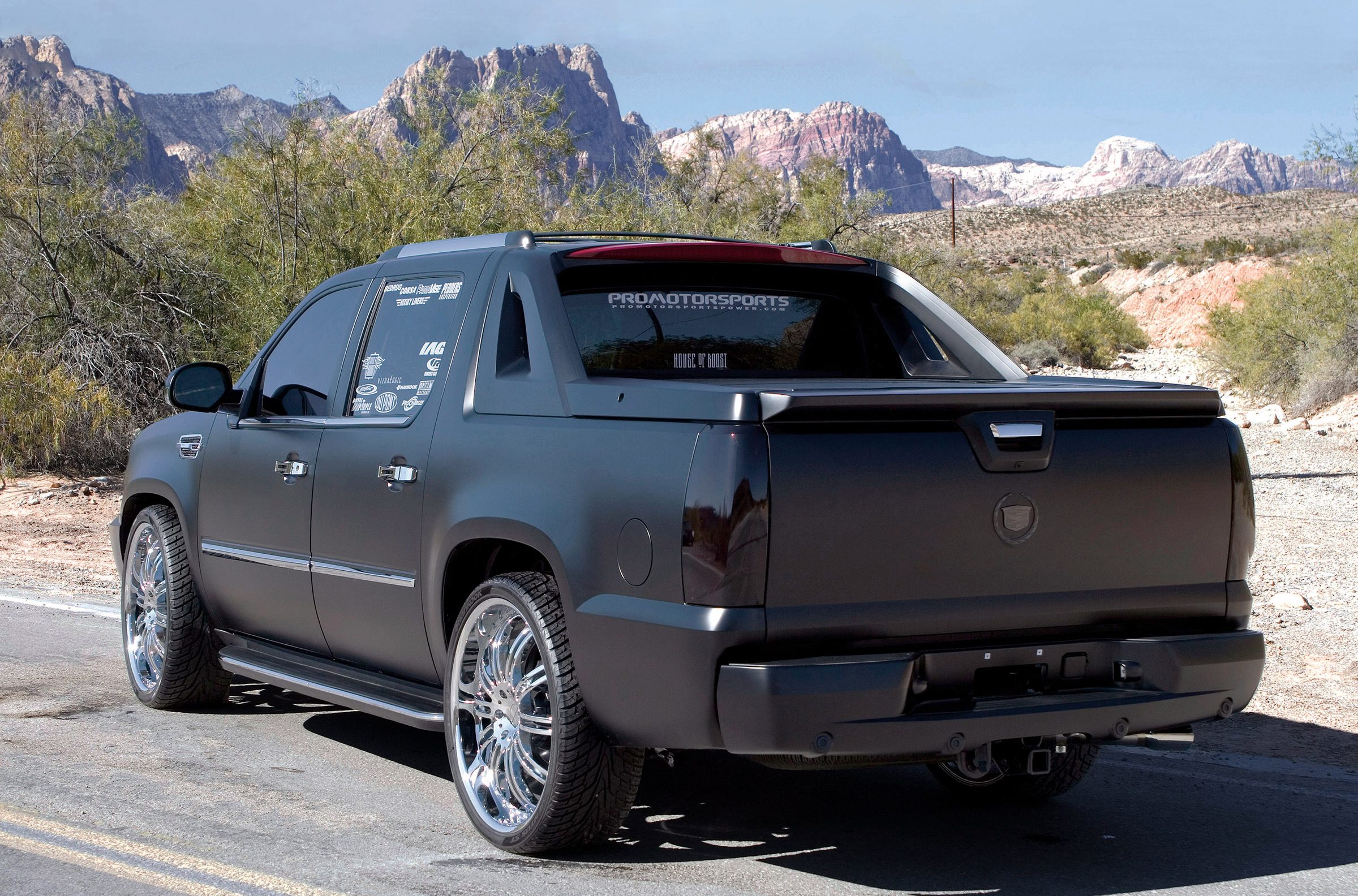 Building a cool new truck to show off at SEMA is nothing new for Jim Lewis and his team at ProMotorsports in Edmond, Oklahoma, as that’s what they do. This stunning new ’07 Cadillac Escalade EXT is their most recent creation. Like so many other enthusiasts, Lewis used the latest generation Escalade because it was an immediate hit, especially among the urban lifestyle crowd, so team ProMotorsports thought one would make a great representative demo vehicle for their shop. Billy Lewis came up with the flat black concept, with tons of chrome and polished metal to contrast the flatness of the finish. While the paint may be the first item that attracts you to this truck, the crew at ProMotorsports actually started the build underneath it all by increasing the performance of the Escalade EXT.