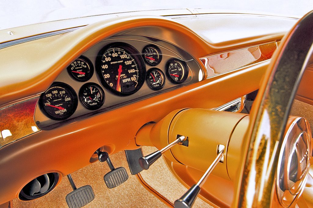 To stop them, Trepanier looked to Baer’s 13-1/2-inch rotors fitted with a pair of its monster four-piston calipers, and a new adjustable proportioning valve to keep everything in balance. You’ll find another set of Baer calipers displacing their power through even larger 14-inch rotors at the ends of a 9-inch Ford rearend fitted with 3.50 gears and huge 20×10 Billet Specialties rims with BFGoodrich traction. Rad Rods’ own triangulated four-link suspension and another pair of Air Ride Technologies bags and Hal’s shocks make sure everything stays in place, no matter what challenges come along.