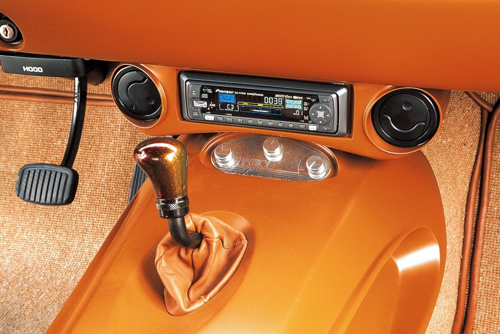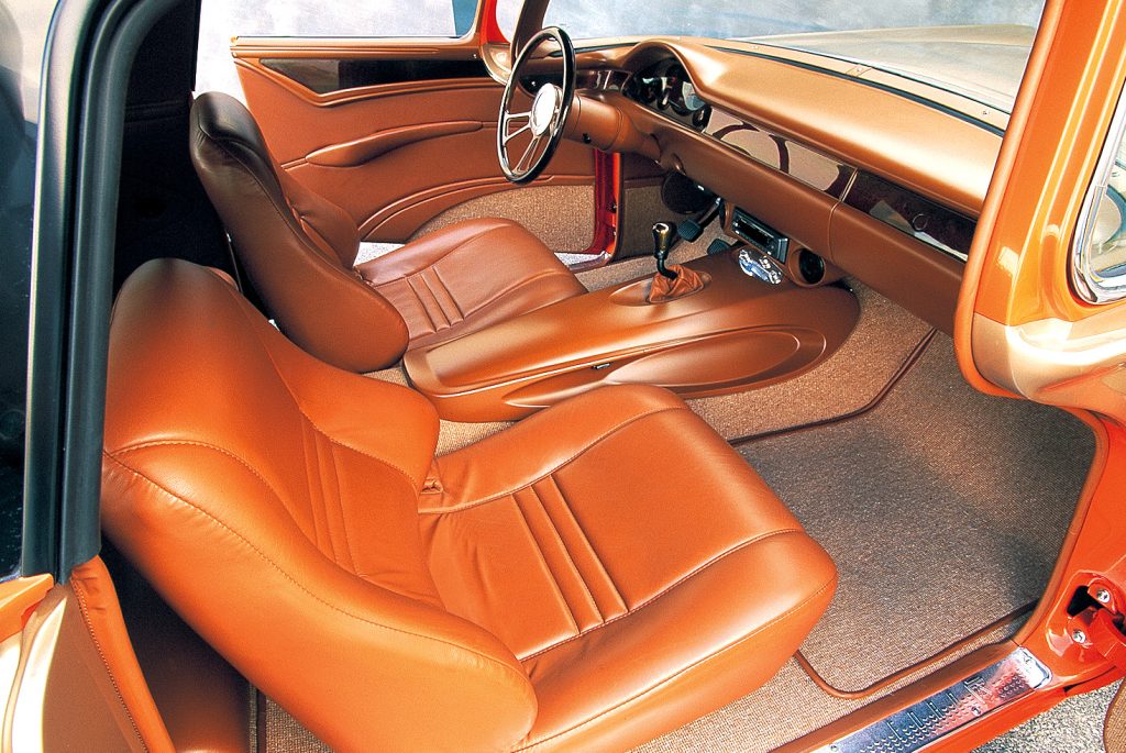 Next we come to the large interior, which provides plenty of room for even more innovation. This comes through Kip Kiper’s wonderful layout of brown leather that covers the Tea’s Design seating as well as the door panels and adjoining areas, while matching suede covers the headliner.