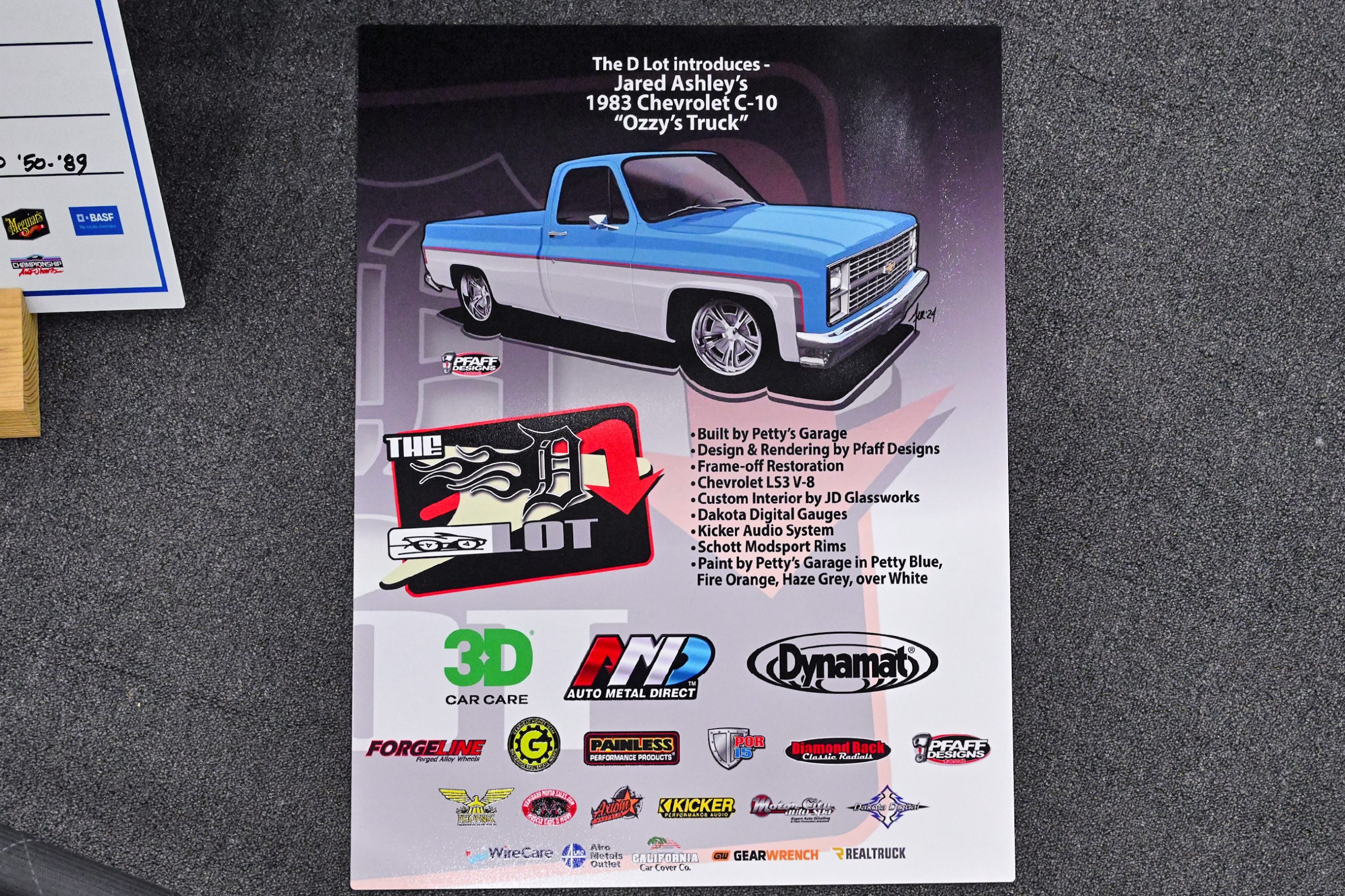 To make that happen, Ashley partnered with Petty’s Garage, the renowned performance shop founded by NASCAR legend Richard Petty, for a frame-off restoration. The revitalized Scottsdale now features a Chevrolet Performance LS3 V8, Dakota Digital gauges, a custom interior by JD Glassworks, and a Kicker audio system, all riding on Schott Modsport wheels. The striking finish—Petty Blue, Fire Orange, Haze Grey, over White—was applied by Petty’s Garage, giving the truck a bold presence while honoring the legacy behind the project.
