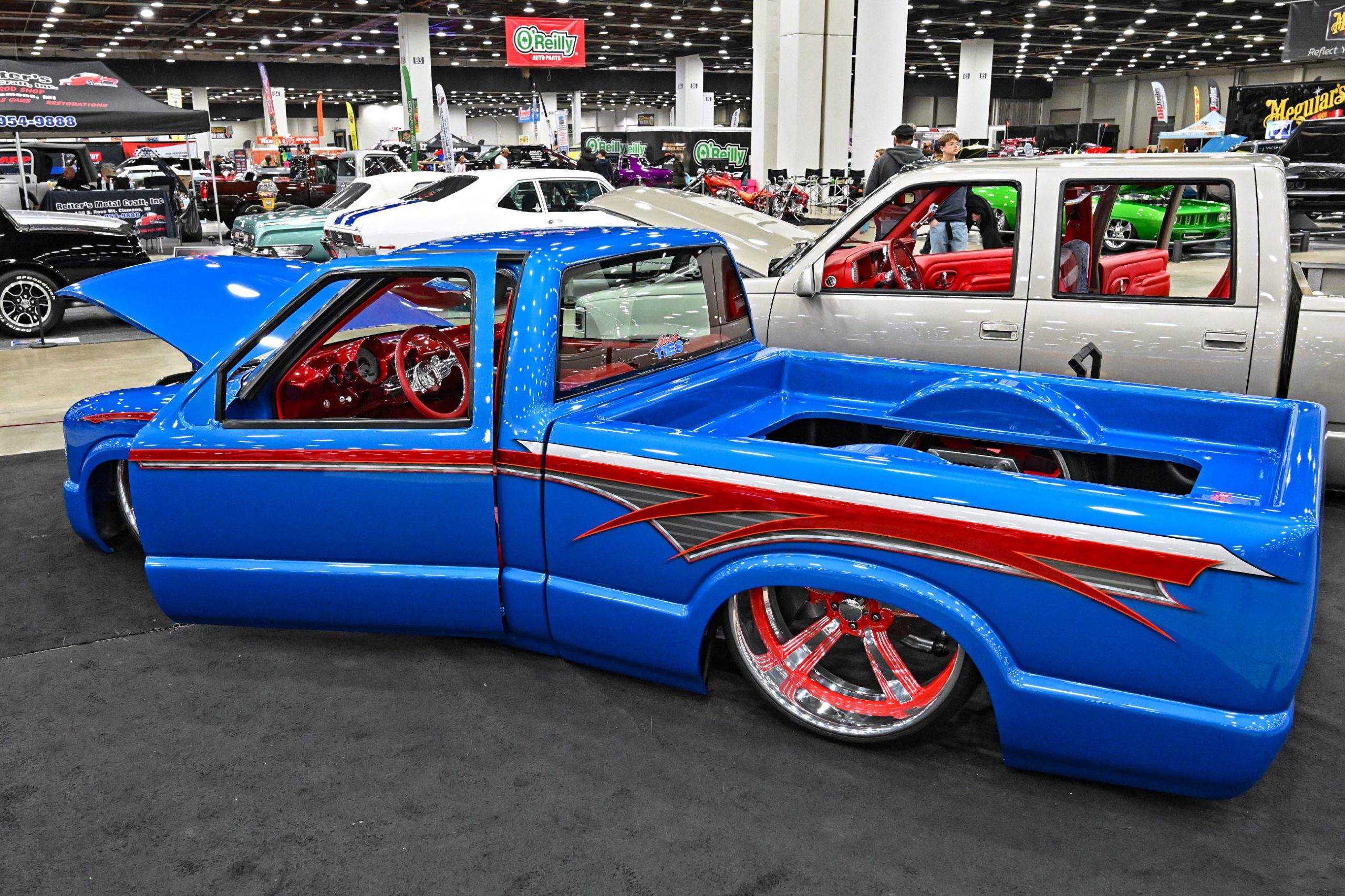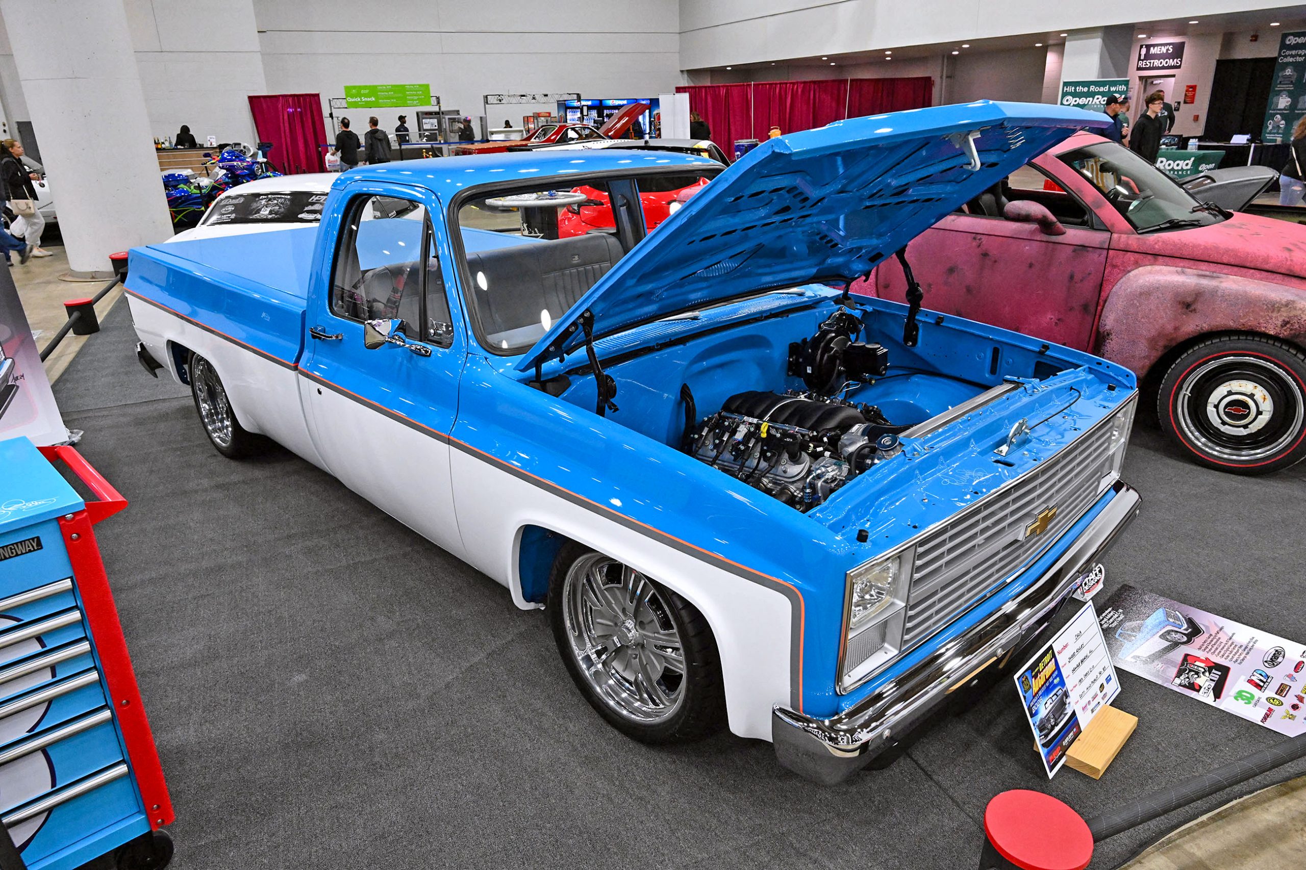 The custom trucks at Detroit Autorama don’t stick to one lane—they kick the doors off the garage and let every style run wild.