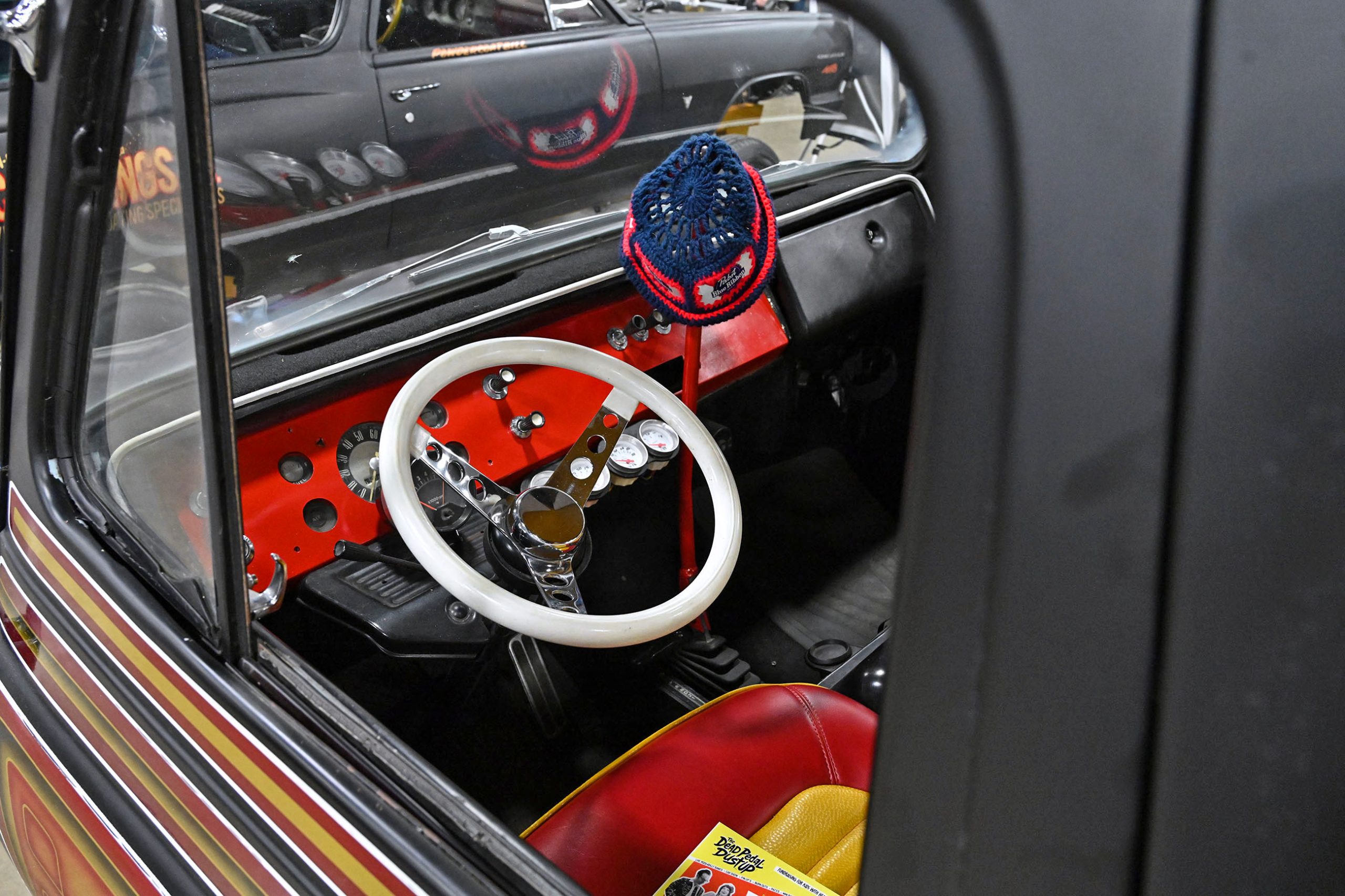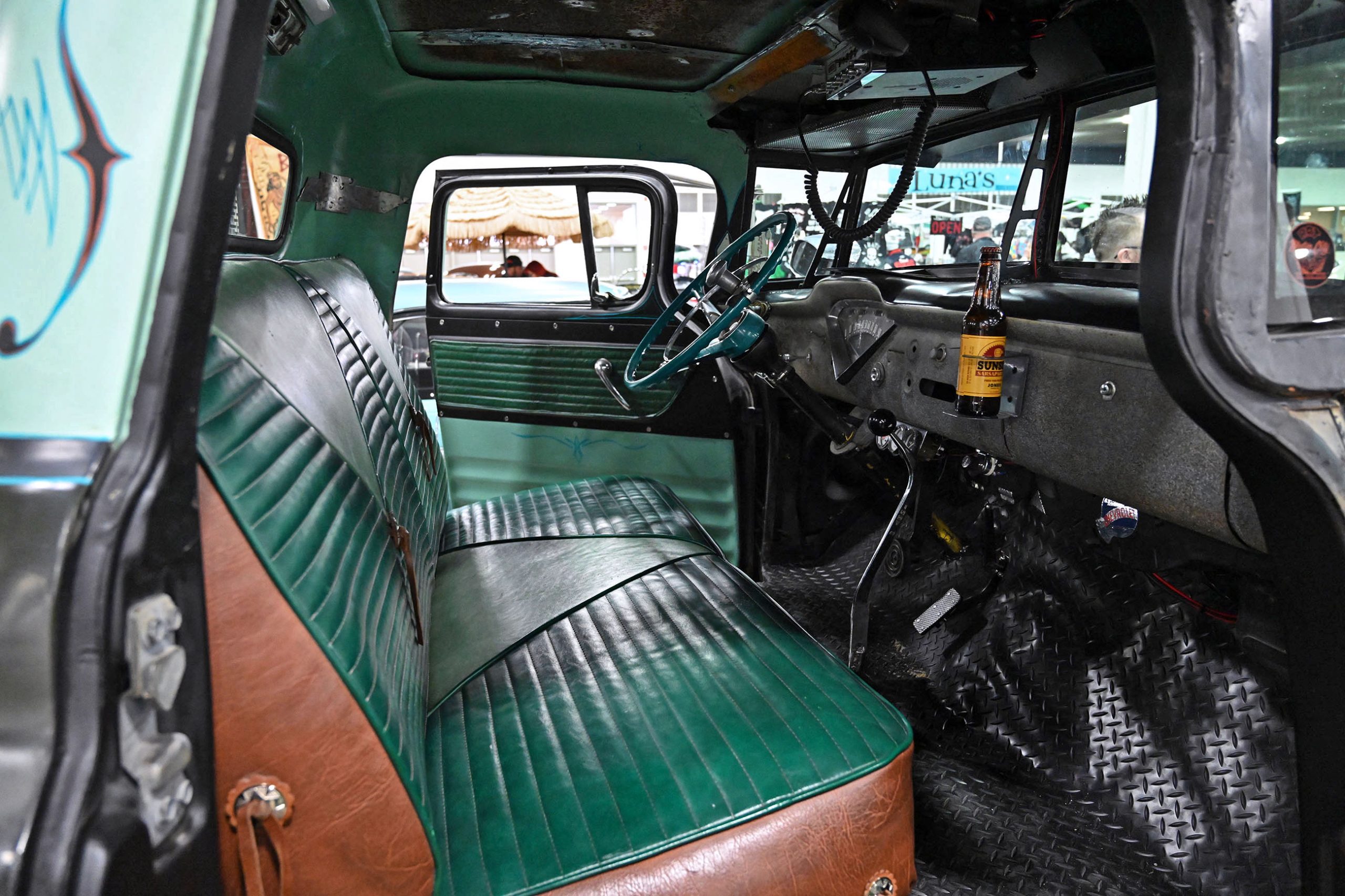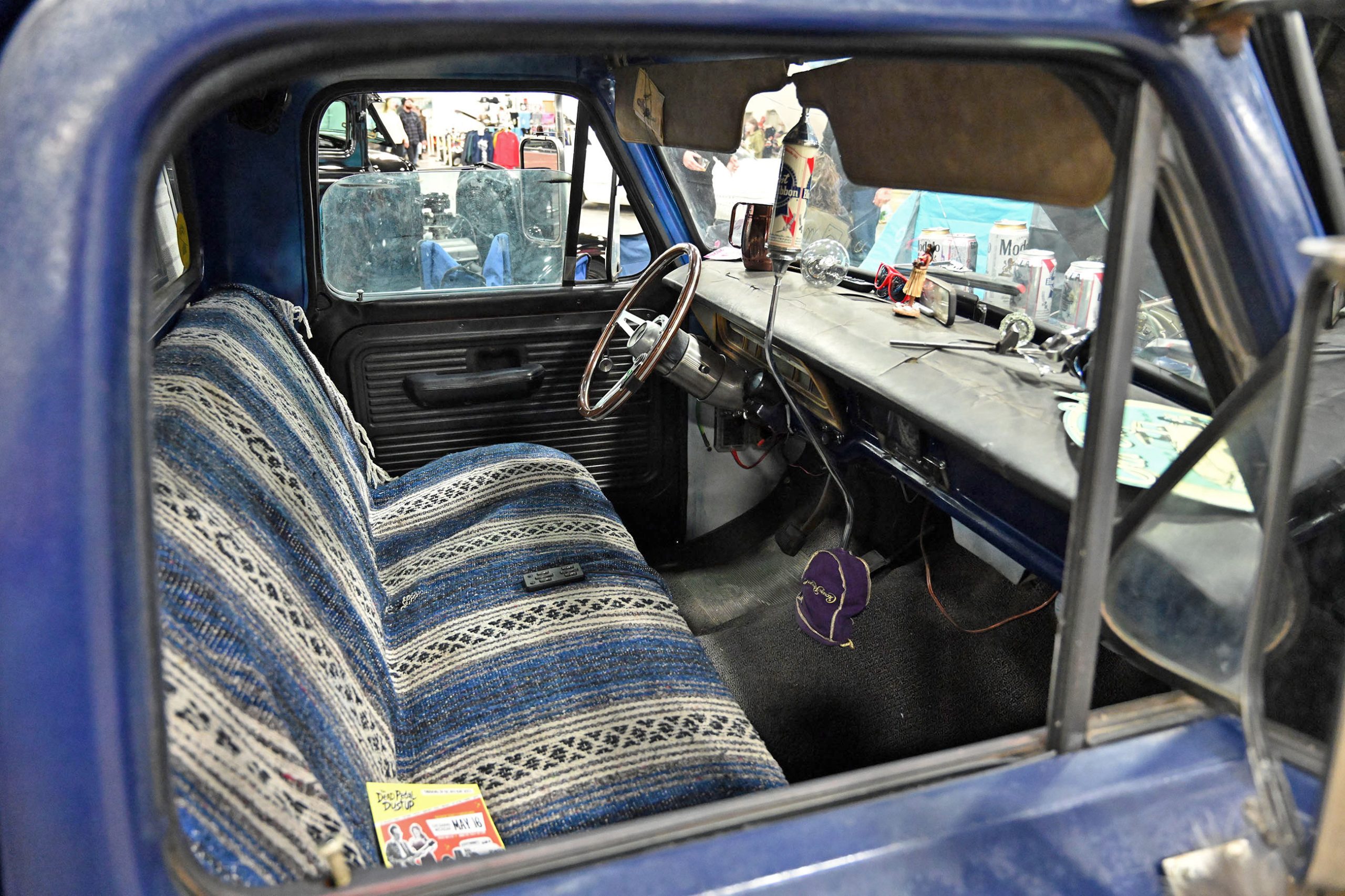 Marcelis Vance’s 1970 Ford F-100 is a true sleeper with a wicked twist. Sitting bagged on the ground and rocking a several Pabst Blue Ribbon cans as props, this classic Ford looks chill and unassuming—until you pop the hood and see the dual turbos, wrapped, and ready to unleash serious power. Inside, nside, Marcelis added a Crown Royal bag shift boot and a color-coordinated Mexican blanket seat cover, giving the interior a casual, personal touch while keeping things functional.