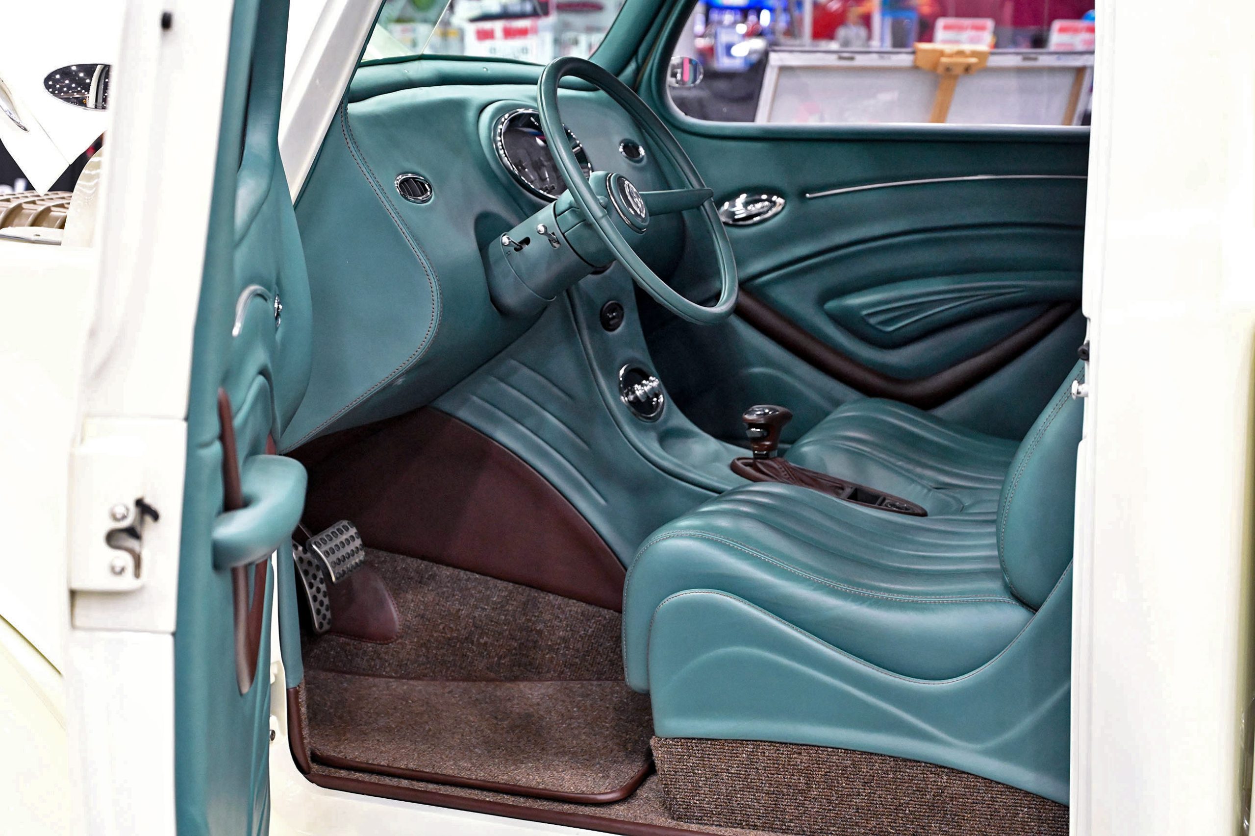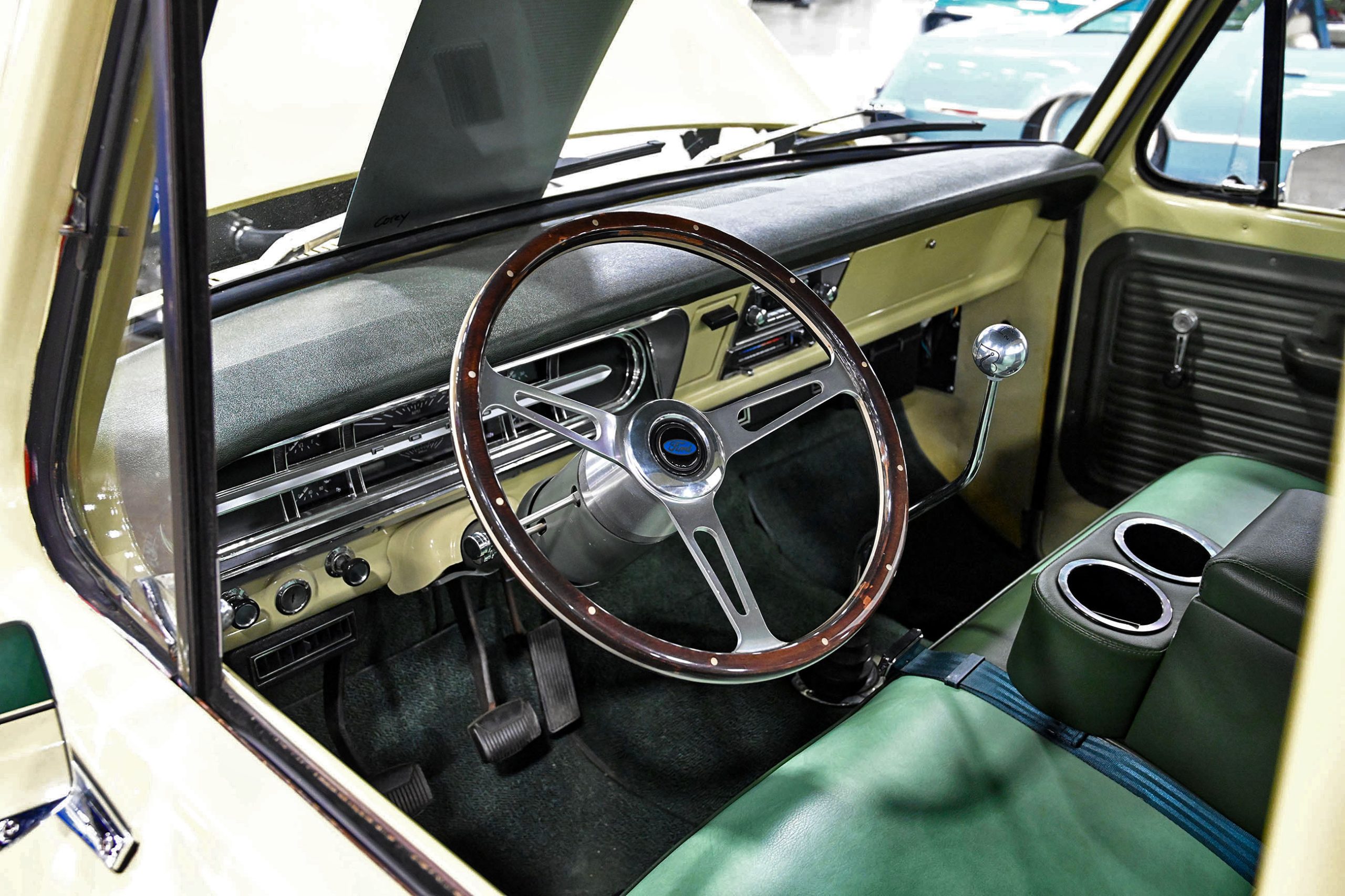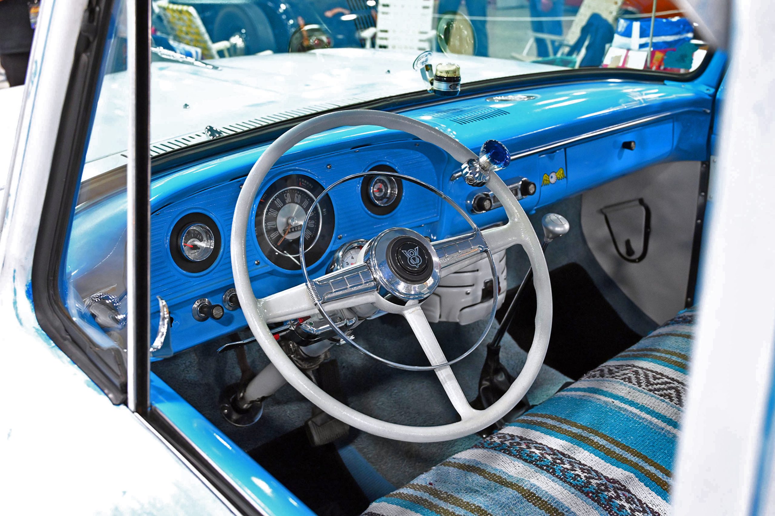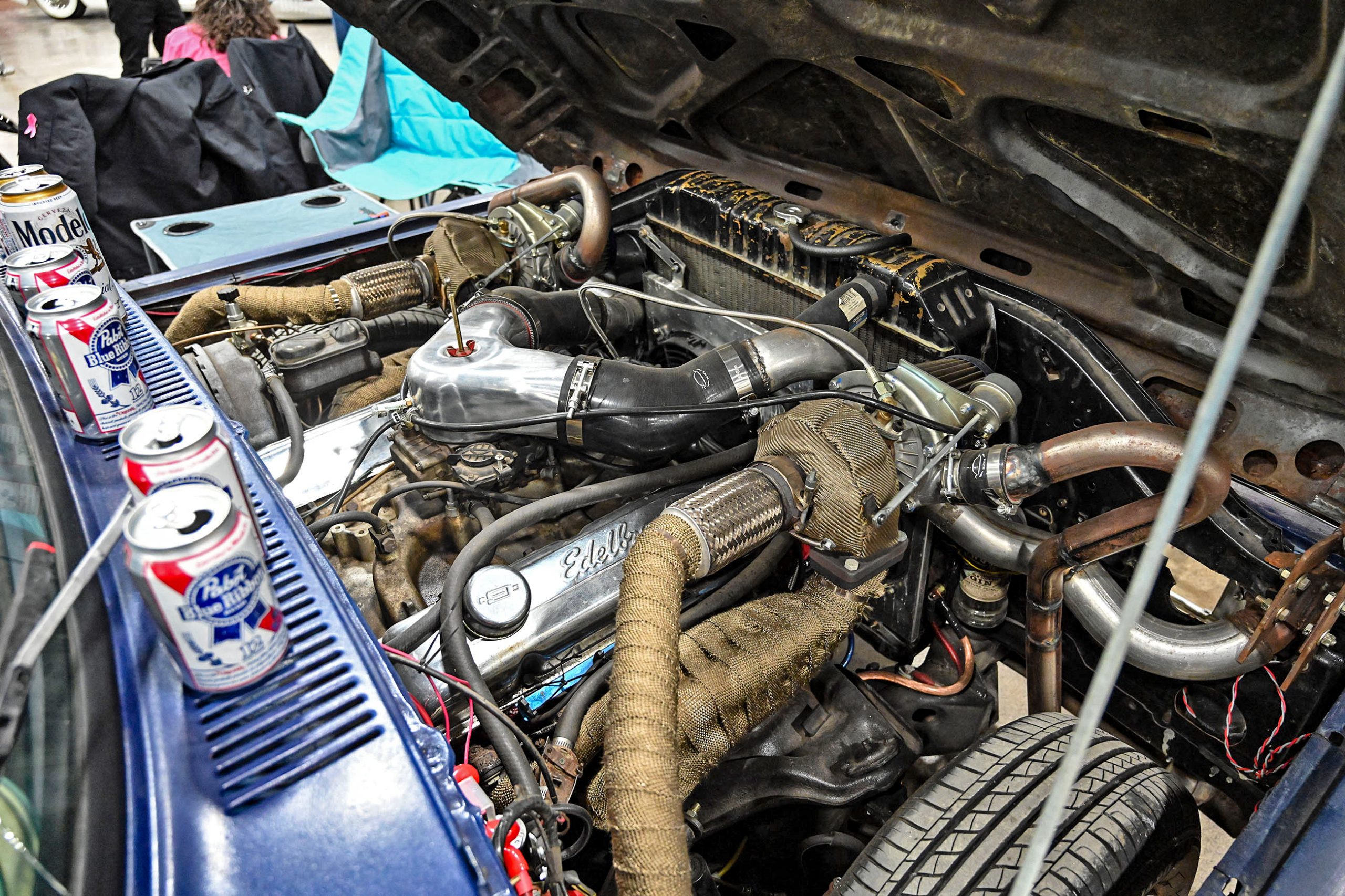 Marcelis Vance’s 1970 Ford F-100 is a true sleeper with a wicked twist. Sitting bagged on the ground and rocking a several Pabst Blue Ribbon cans as props, this classic Ford looks chill and unassuming—until you pop the hood and see the dual turbos, wrapped, and ready to unleash serious power. Inside, nside, Marcelis added a Crown Royal bag shift boot and a color-coordinated Mexican blanket seat cover, giving the interior a casual, personal touch while keeping things functional.