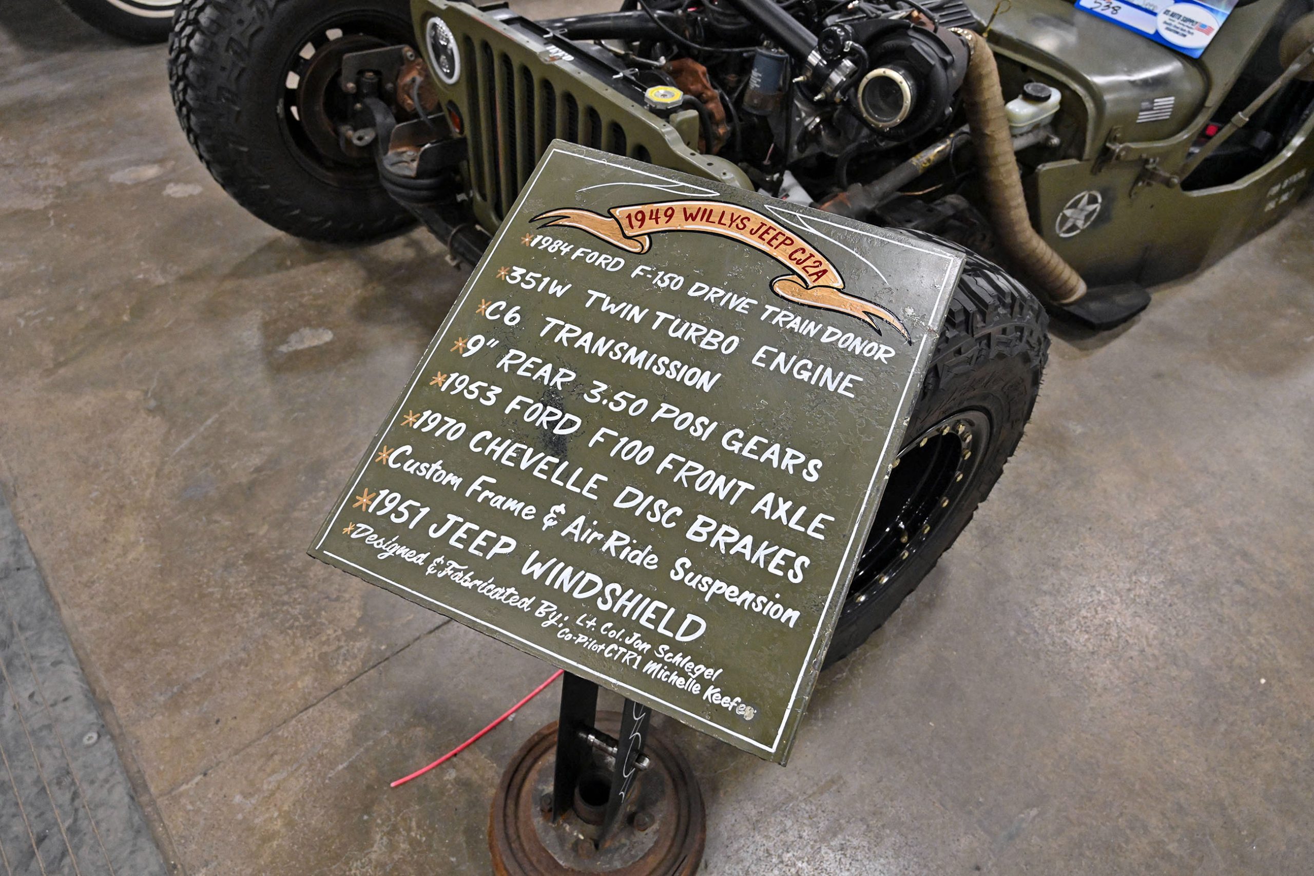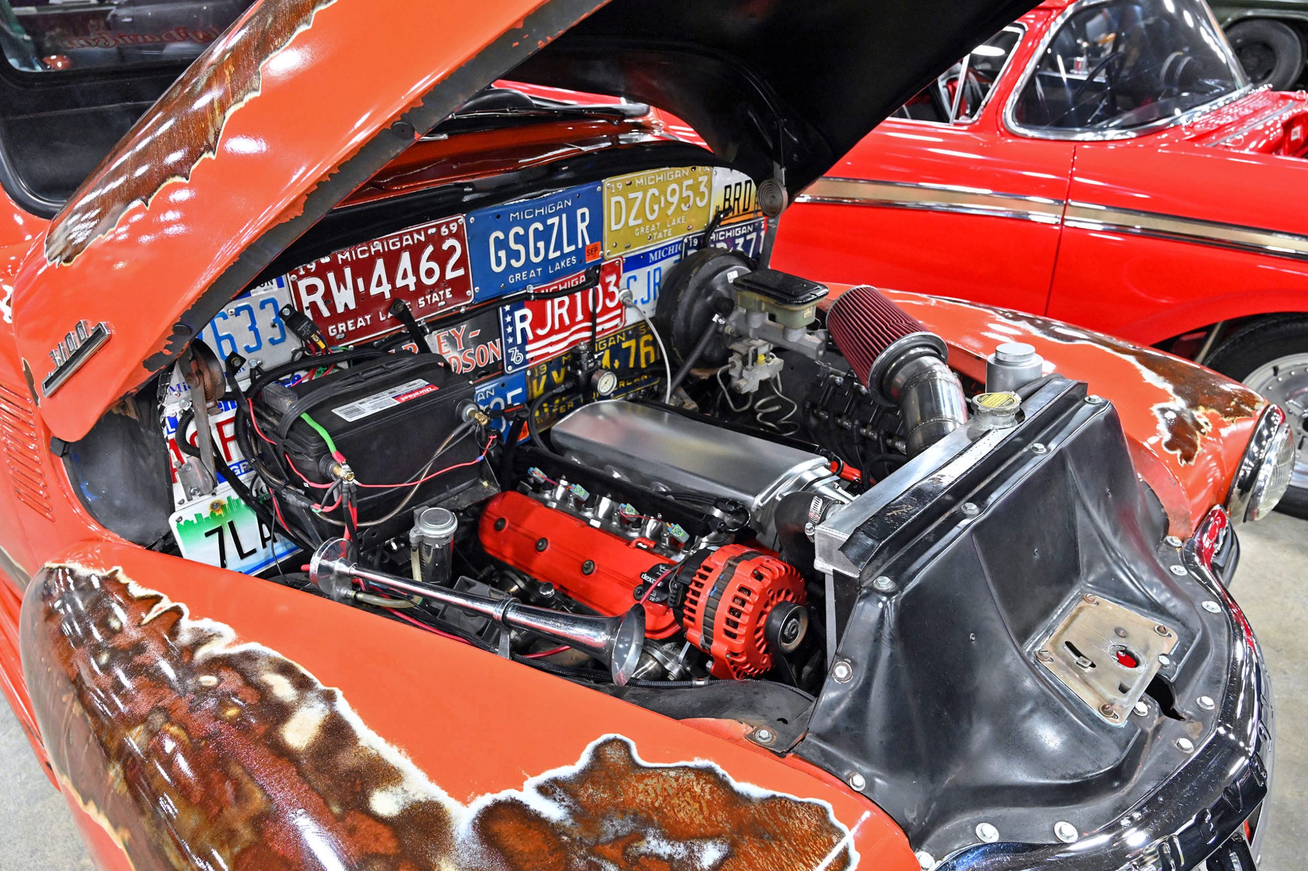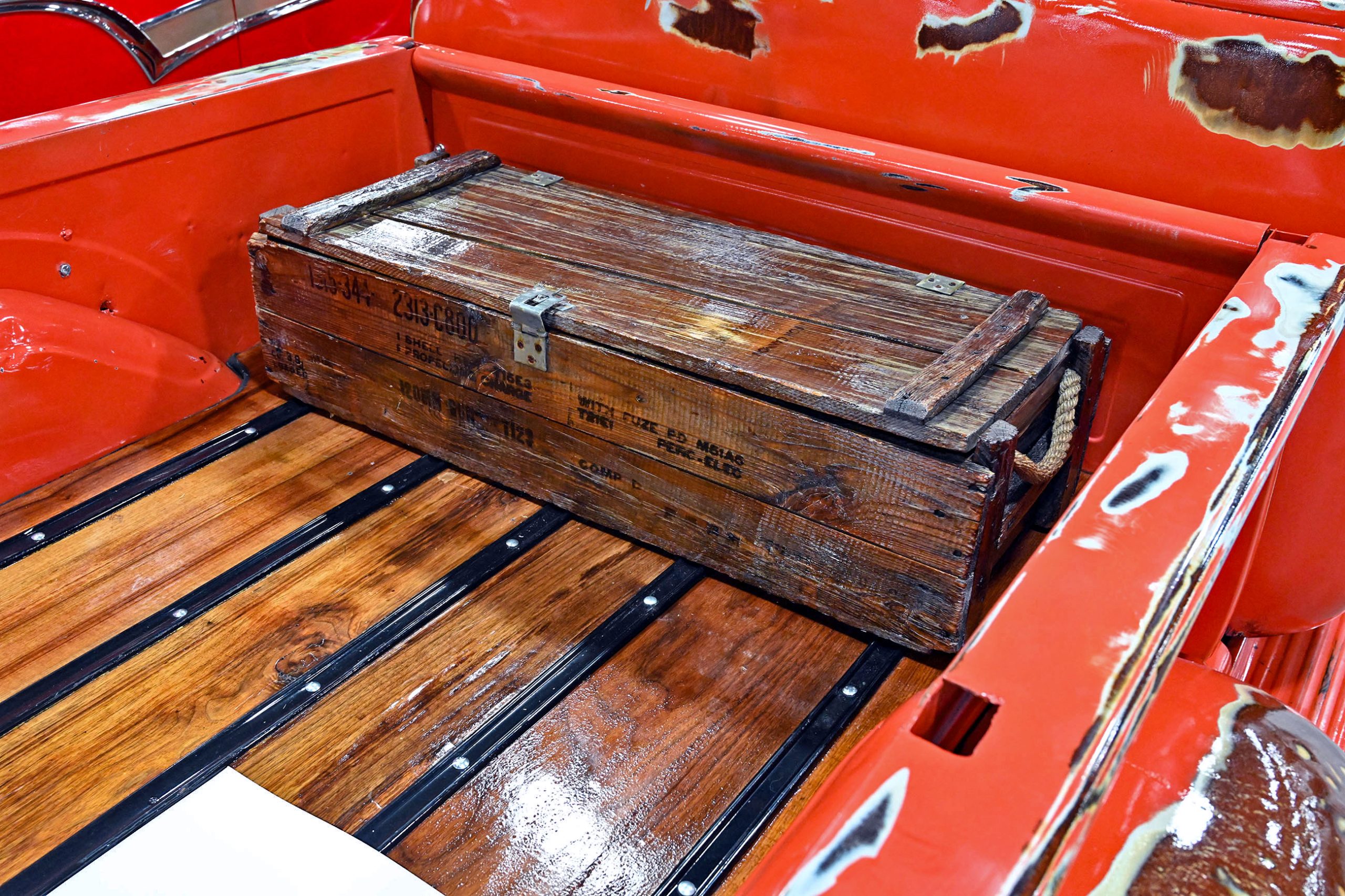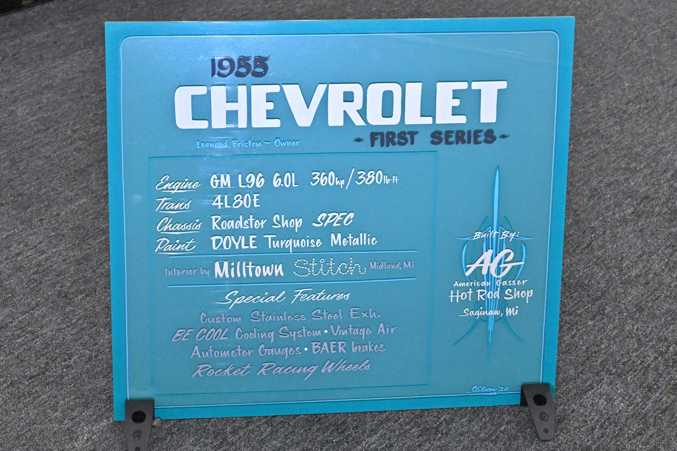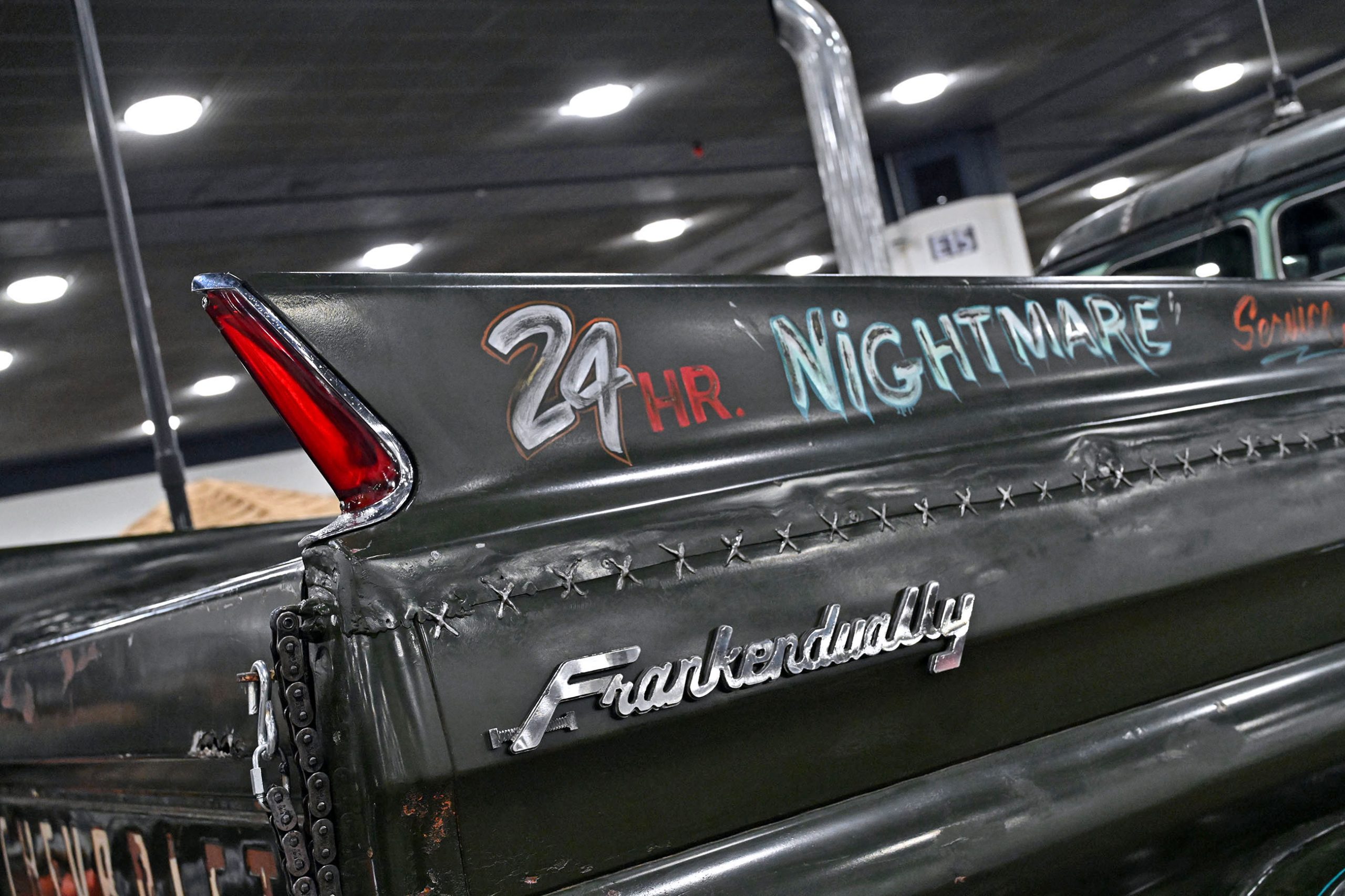 This 1953 Chevrolet pickup owned by Frank Buscemi stands out thanks to a truly unique piece of hand-painted artistry. The truck features a one-of-a-kind Harley-Davidson logo pinstriping design created by legendary pinstriper Letterfly, turning the classic Chevy into a rolling canvas. The detailed striping work adds a bold custom touch that blends motorcycle culture with vintage truck style, giving the pickup a personality all its own.