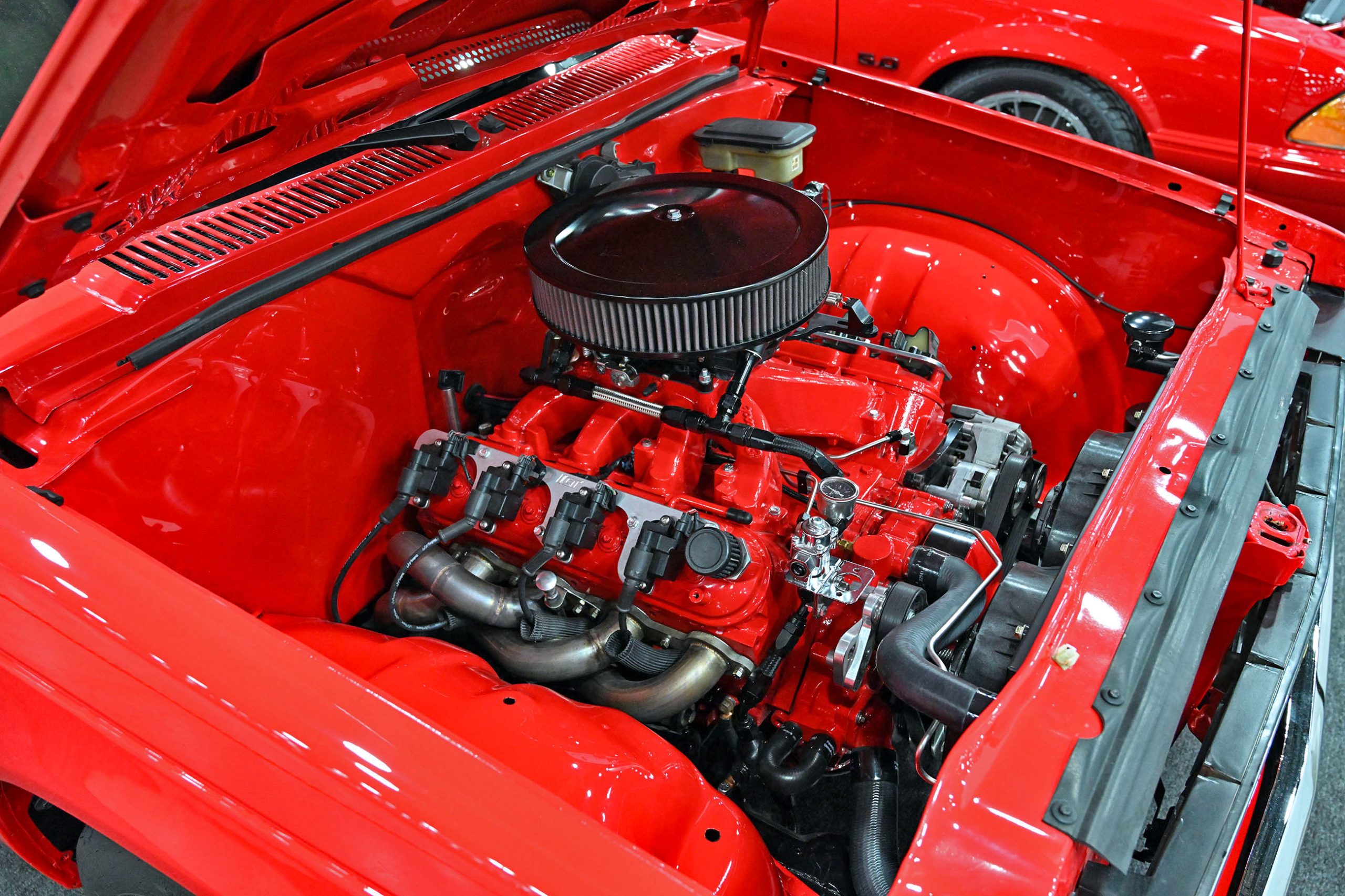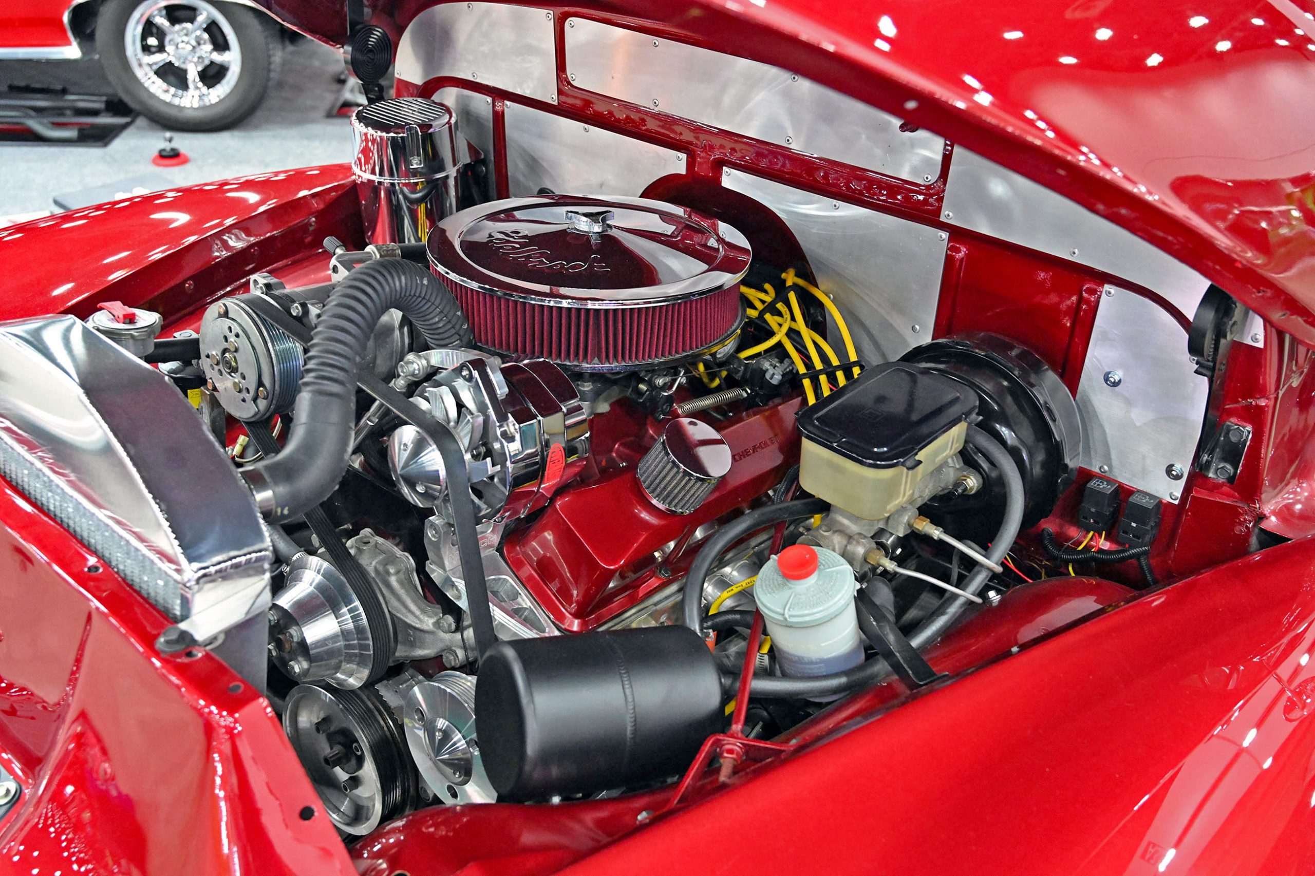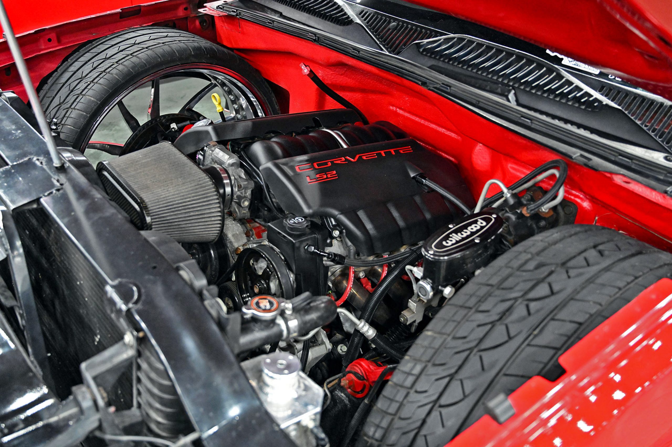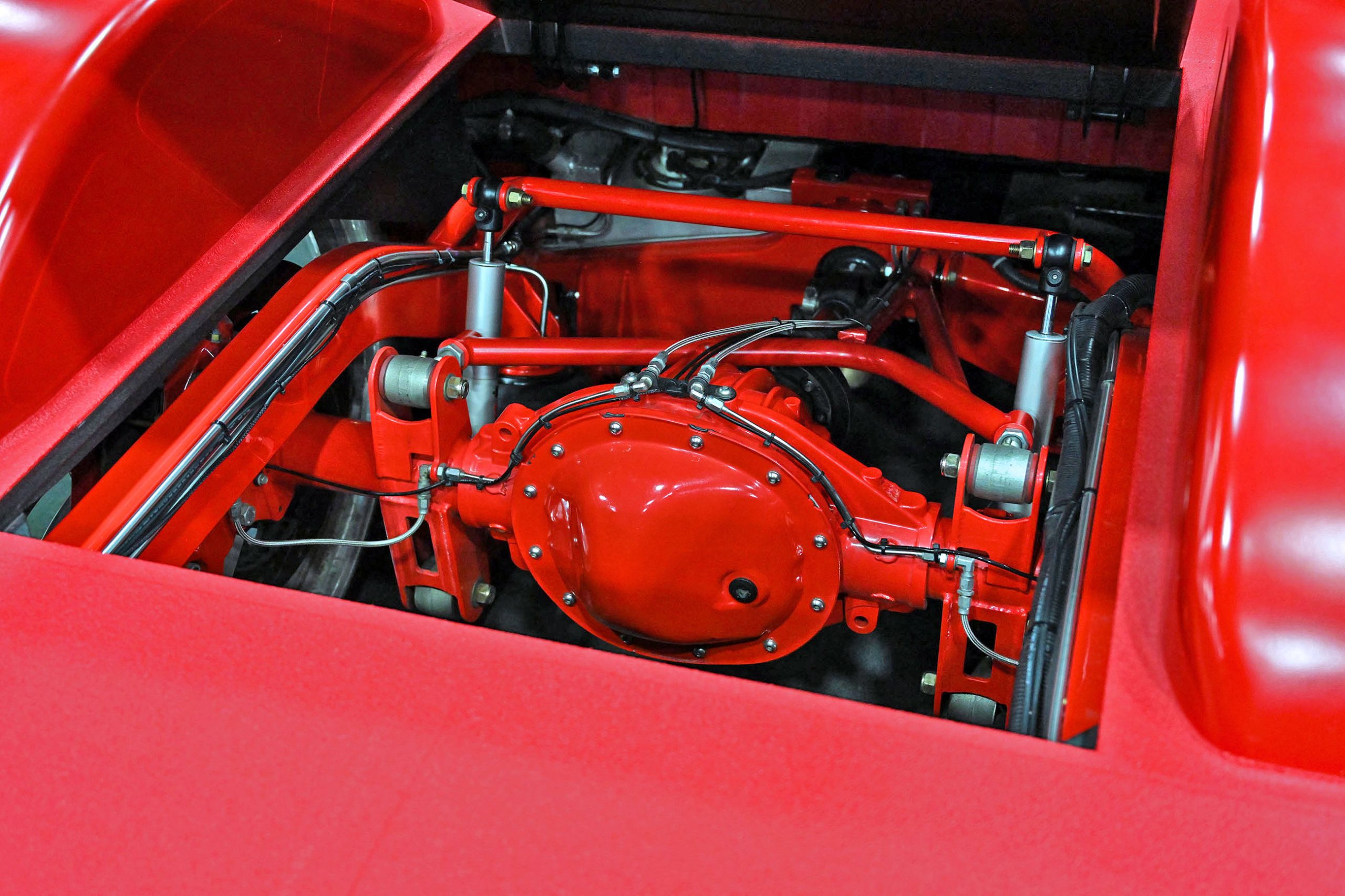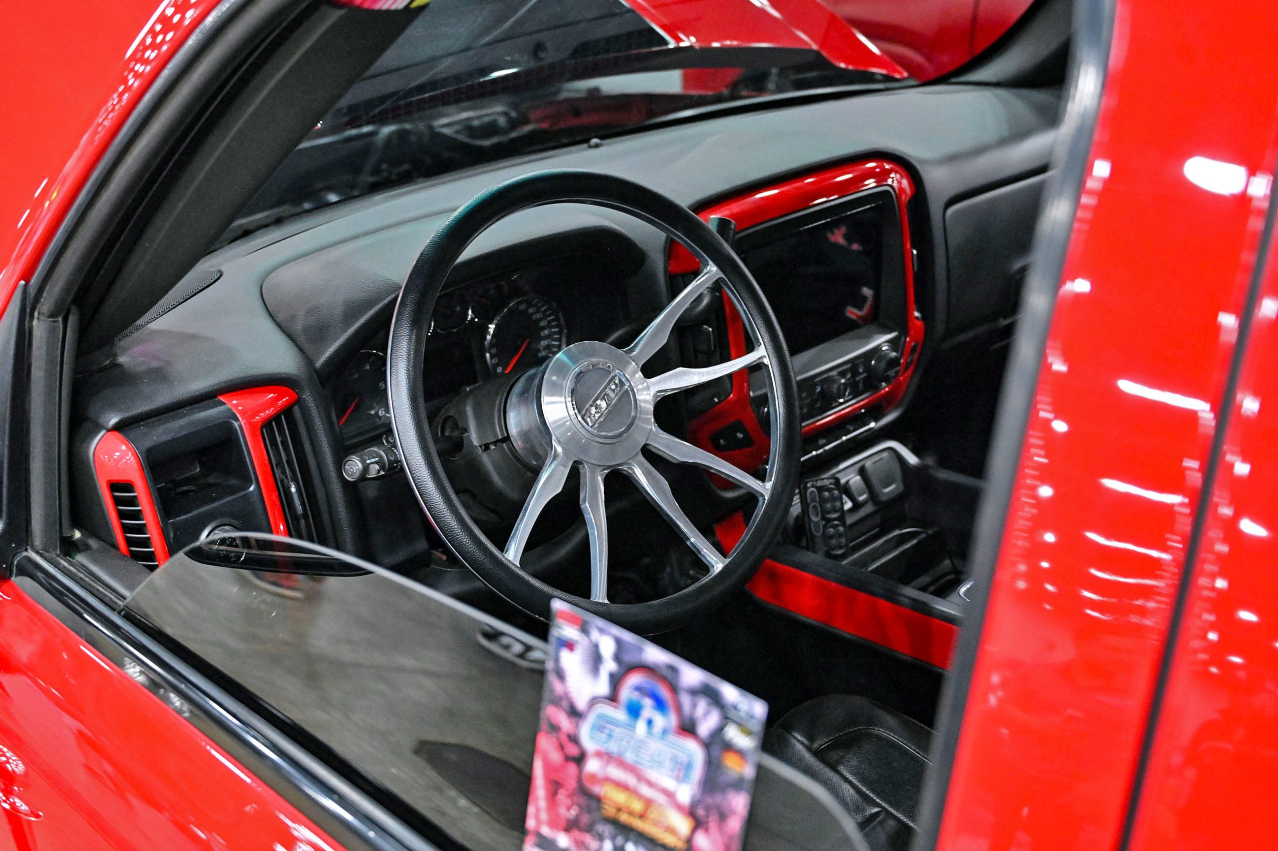 Humberto Avila’s 2021 GMC Sierra 1500 represents the modern side of the Team Billet show-truck movement—clean, low, and built with serious attention to detail. The truck features a custom-painted chassis, with extensive fabrication including front and rear tubs and a raised bed floor to accommodate its massive rolling stock while keeping the stance dialed in. Finished in factory red with a satin clear, the Sierra has a rich, modern finish that pairs perfectly with its laid-out presence.