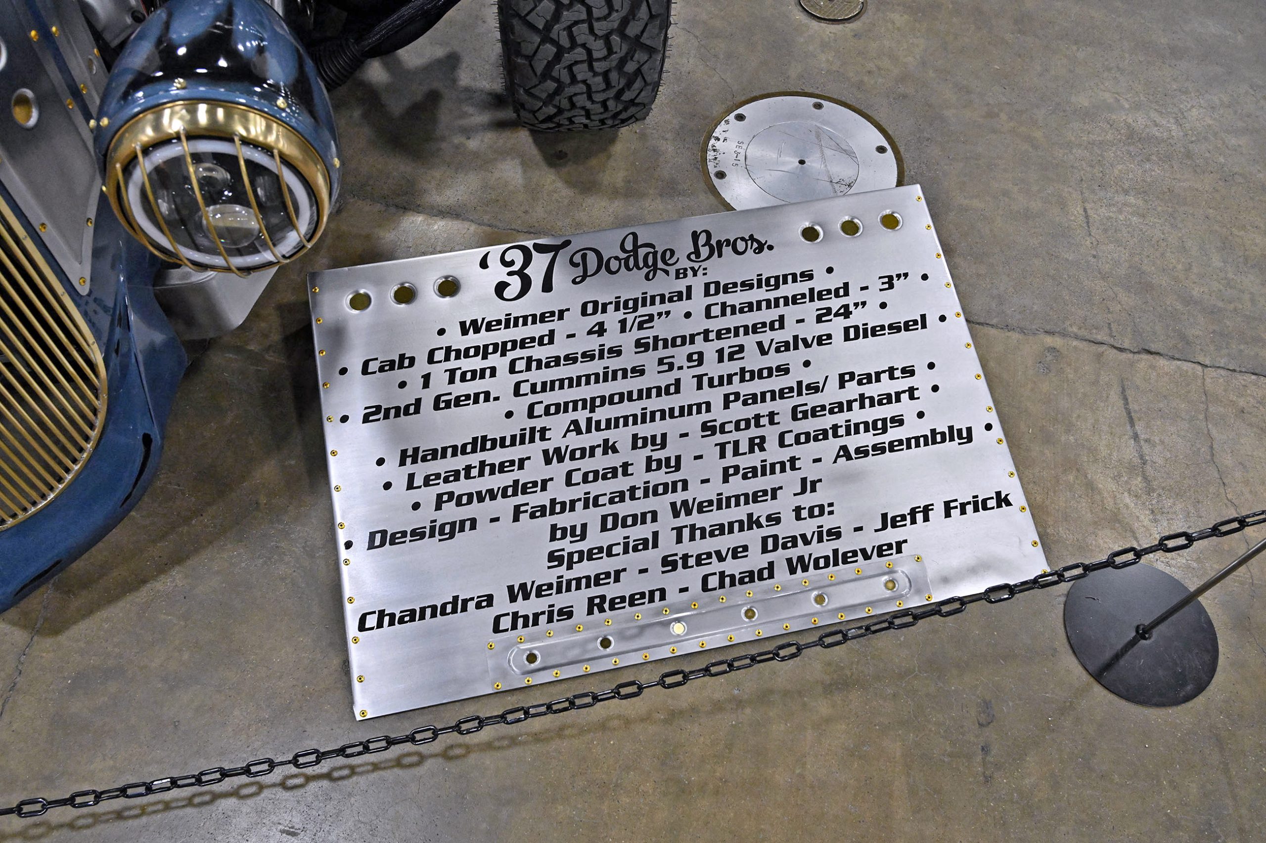 Backing up the look is a 2nd Gen 5.9L Cummins 12-valve diesel breathing through compound turbos, delivering the kind of relentless torque you’d expect from something this aggressive. The truck is packed with handbuilt aluminum panels and components, all designed, fabricated, painted, and assembled by Don Weimer Jr. himself. Inside, Scott Gearhart’s leatherwork adds a crafted, upscale layer to the otherwise industrial theme, while TLR Coatings handled the powder coating that ties the entire build together. It’s a diesel-powered custom that looks ready for the end of the world—only executed with the kind of detail and finish that elevates it into true show-quality territory.