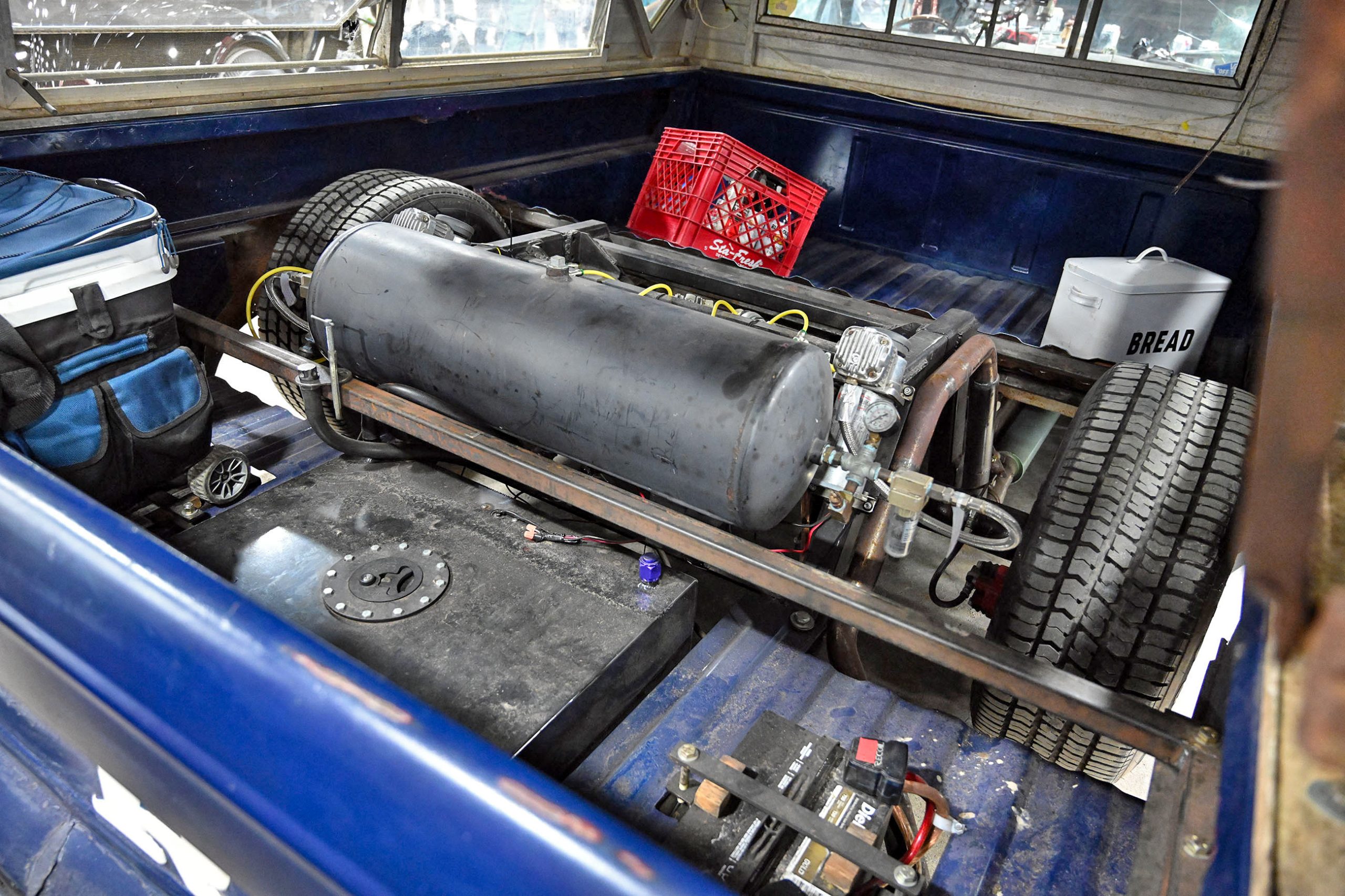 Underneath the subtle exterior lies a truck built to take pink slips all day. Between the turbo setup, clean air routing, and smart power steering upgrades, this F-100 balances show-ready style with street-ready muscle. It’s a rolling contradiction: a laid-back, bagged cruiser on the outside and a high-powered, turbocharged surprise machine on the inside—a build that’s equal parts clever, capable, and downright fun. You used to see these trucks everywhere, but few were ever this bold, this smart, or this damn sneaky.