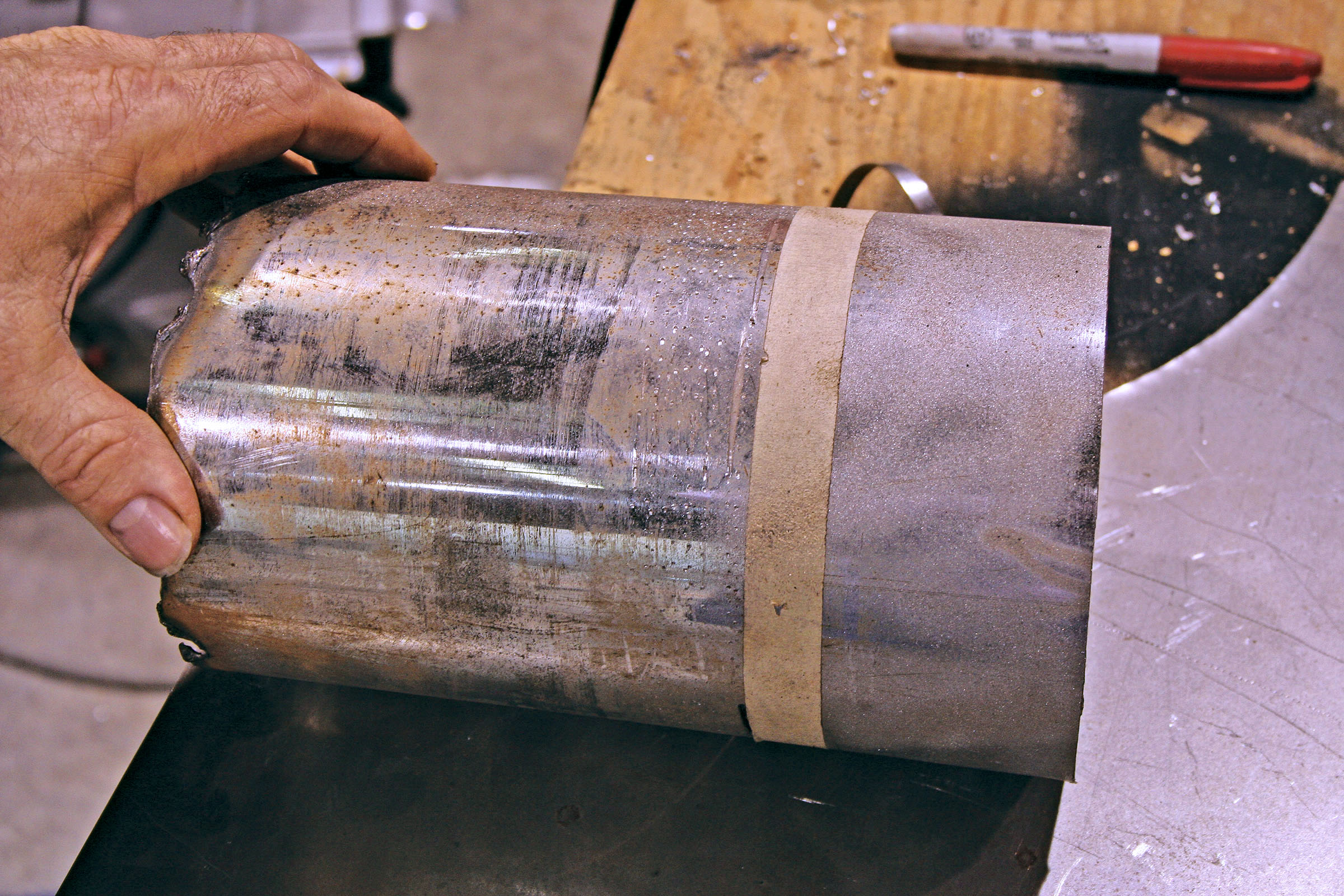 After looking at the available taillight frenching kits available, the builder decided that it would be best to fabricate the taillight buckets from a few feet of 5-1/2-inch diesel exhaust tubing and a sheet of 16-gauge steel. It will be easier to cut the tubing down in size than buying a smaller size and having to stretch the metal. As we mentioned earlier, the taillights were new LED units that would provide the driver with the security of safe, bright taillights. The installation required a cutoff wheel, MIG welder, air drill and a variety of small hand tools. The complete fabrication and installation took about four hours, and the finished results looked great. Follow along as we light up the back of this ’48 Dodge coupe.