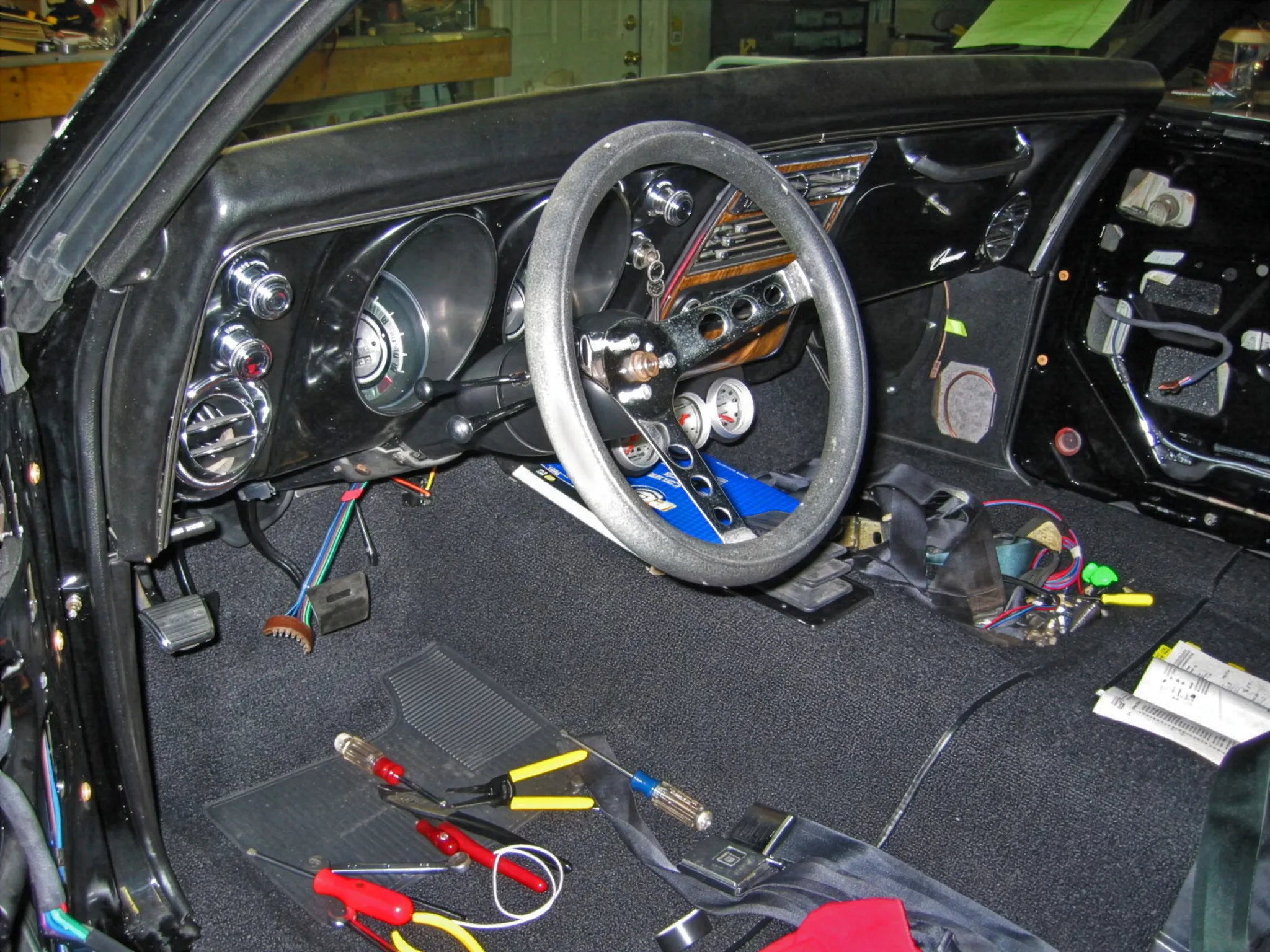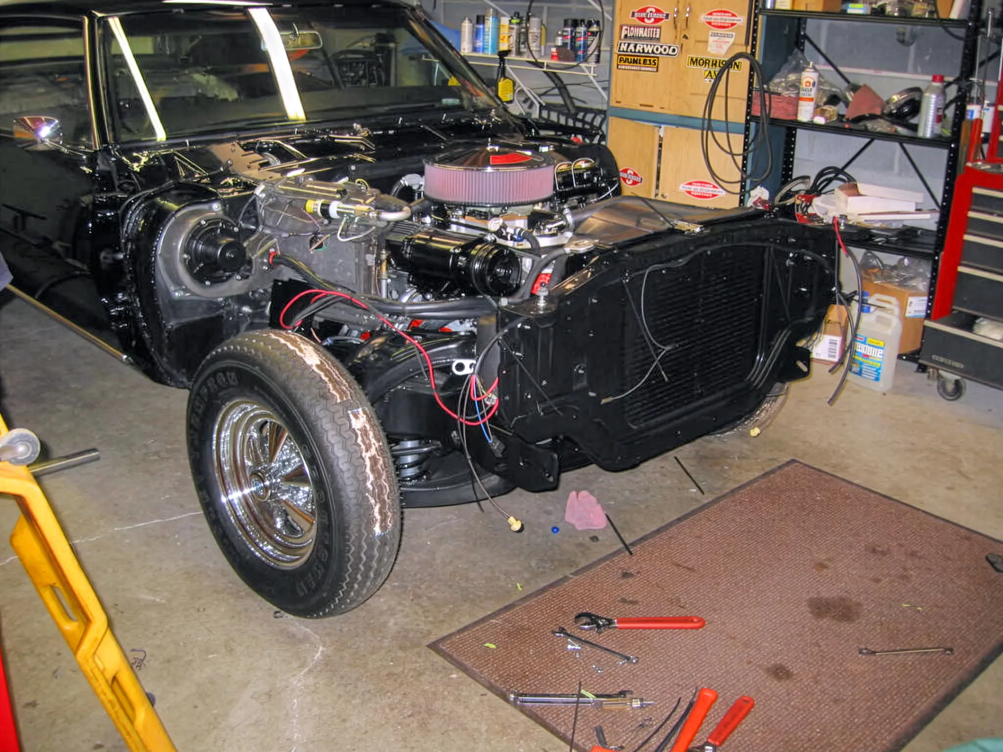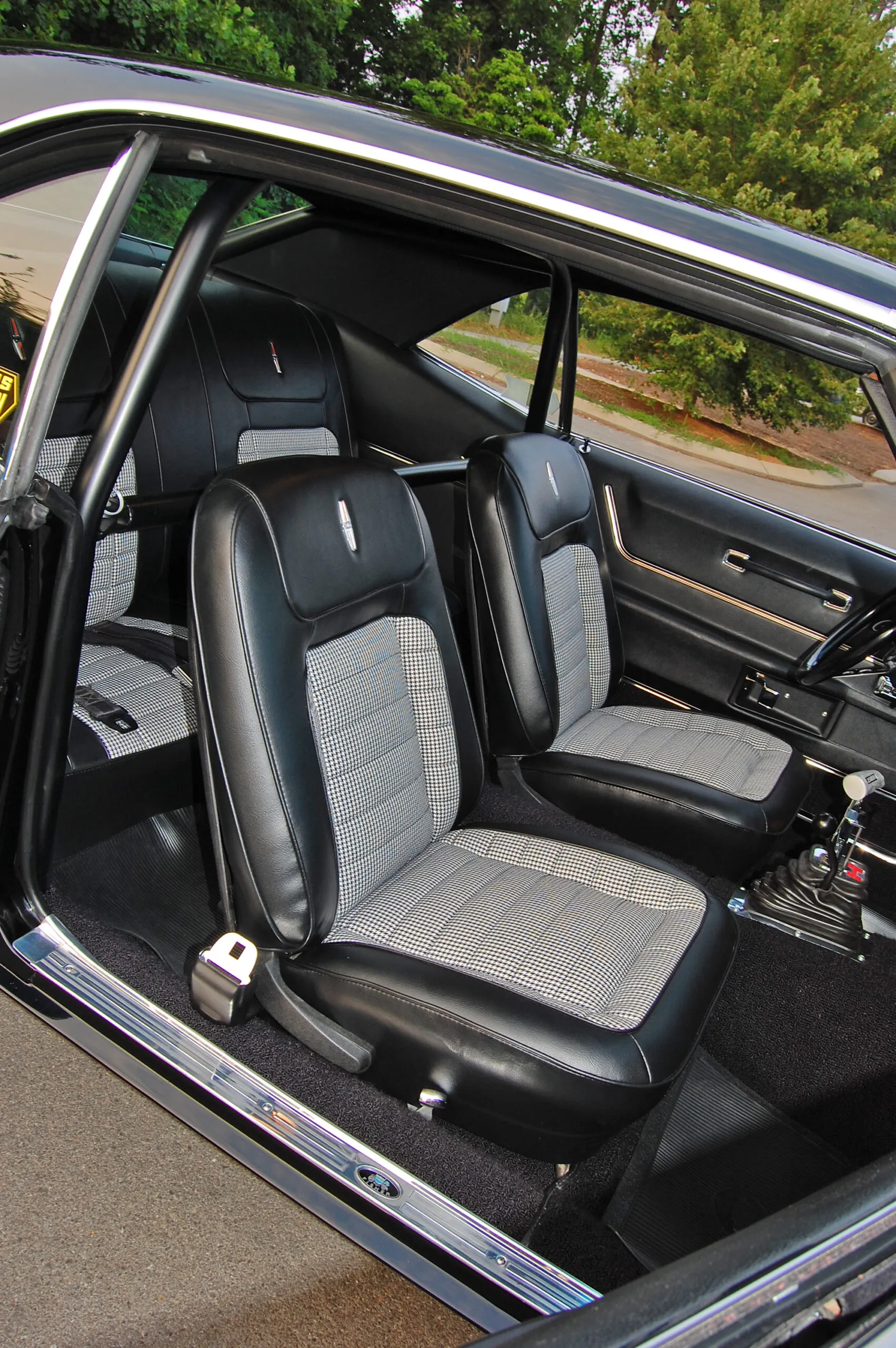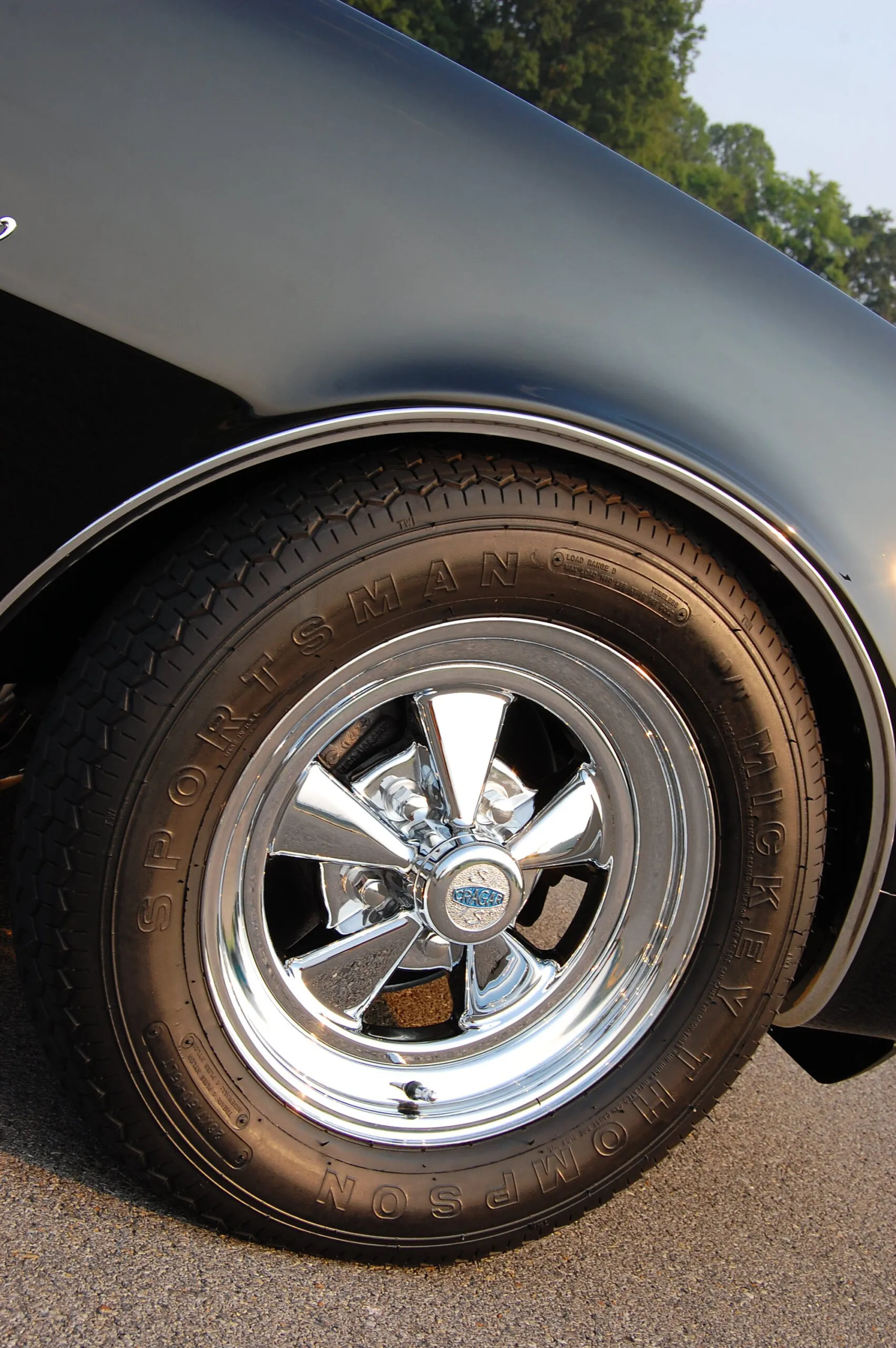 Before reassembling the front subframe, Minor sent it to Willett Powder Coating for a durable and good-looking finish. He then installed the stock suspension equipment, aside from the 12-way adjustable QA1 shocks. The car came equipped with disc brakes on the front, so Minor simply rebuilt the entire braking system to stock spec, while also retaining the stock quick-ratio power steering box that came with the F41 Suspension option. Out back, the car was originally fitted with a 12-bolt Positraction rear end, so Minor kept the original housing and installed a 4.10 gear set before topping it off with a finned aluminum cover. Minor bolted on a pair of subframe connectors to keep the unibody structure stiff, and installed the bright yellow Lakewood traction bars for old school hot rod appeal. Additional old school styling comes from the 15×4- and 15×10-inch Cragar five-spokes and the accompanying Mickey Thompson tires, which protrude just enough from the rear wheel arches to provide the look everyone wanted in the late ‘60s and early ‘70s.