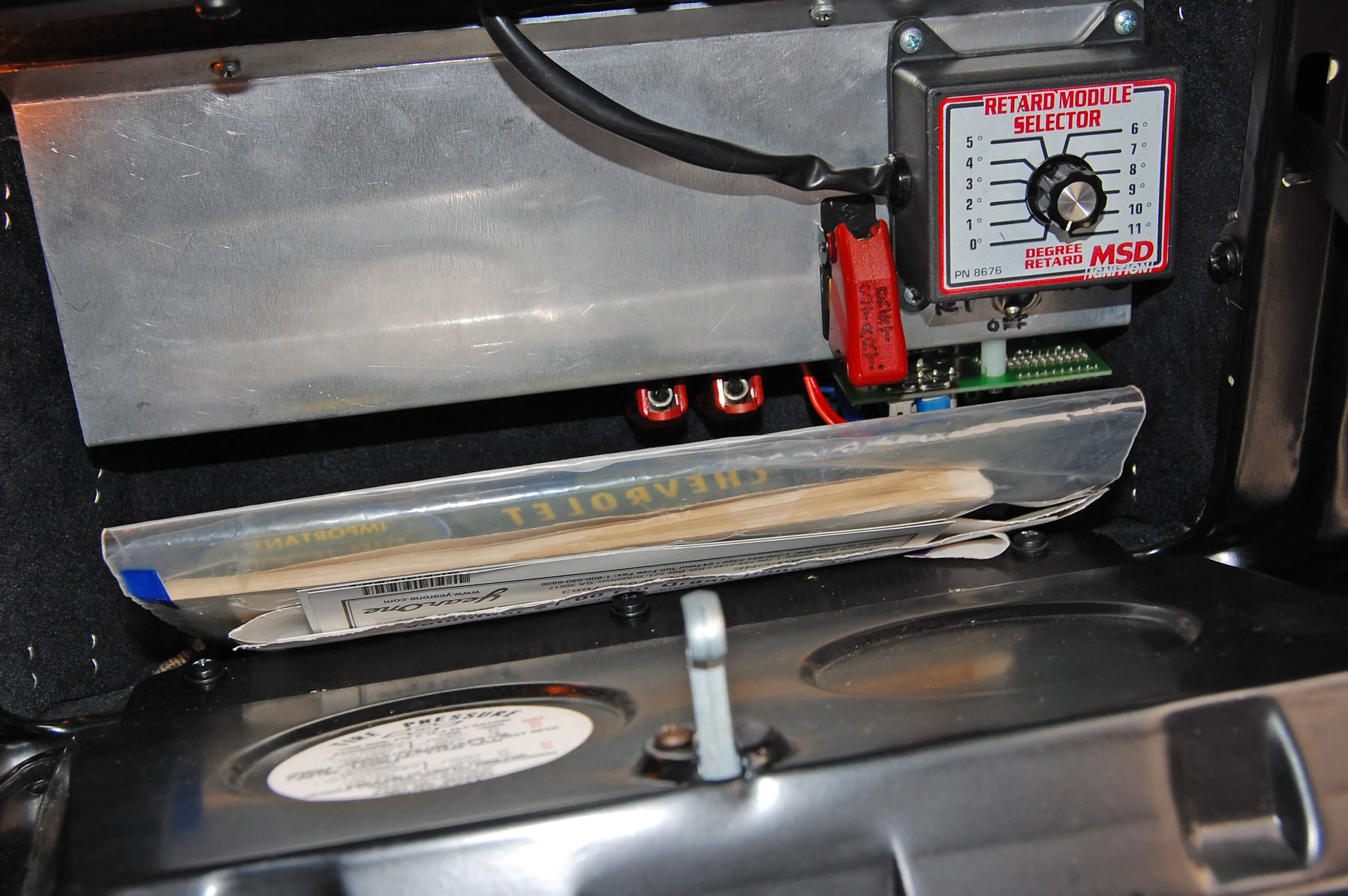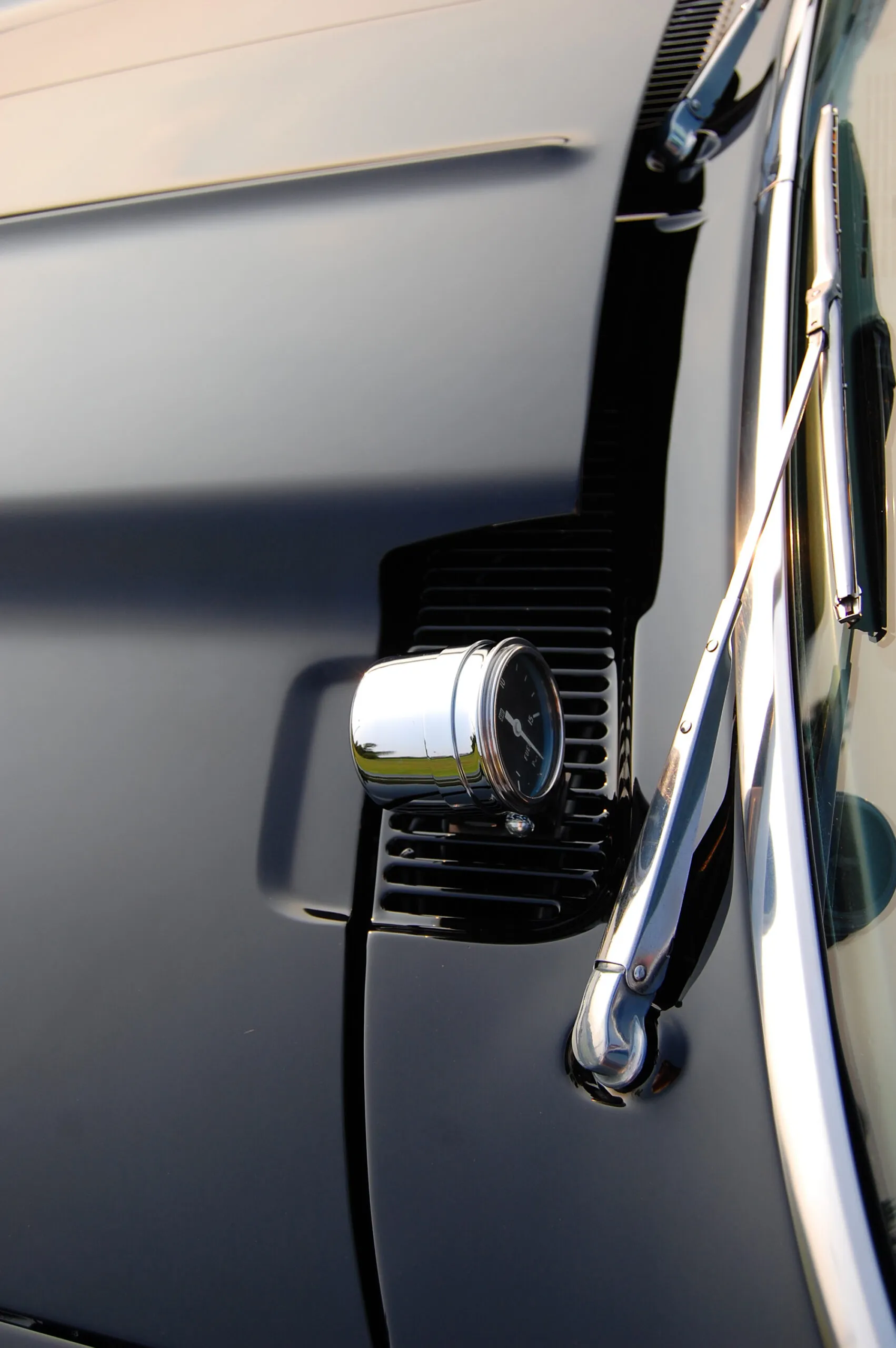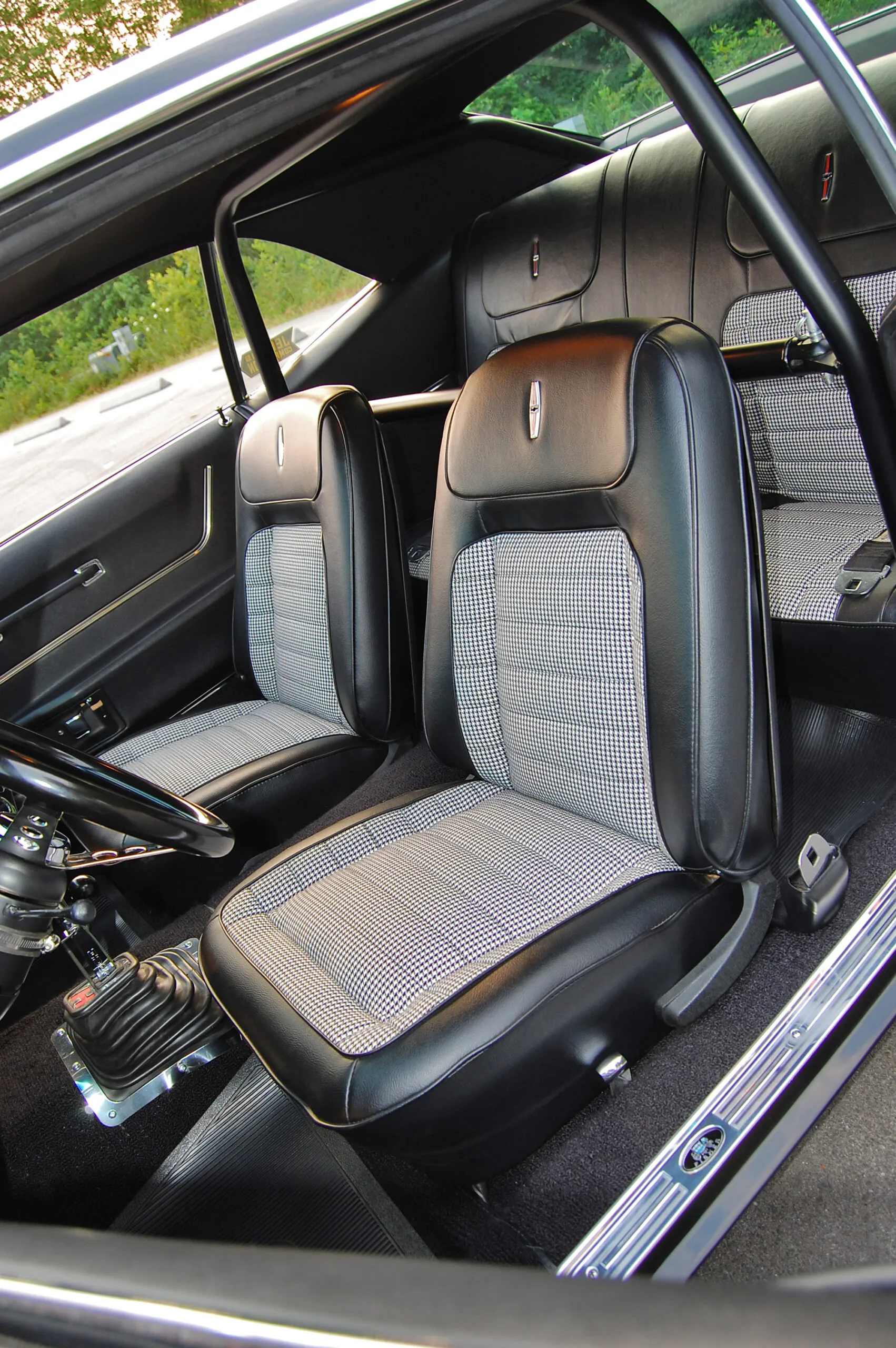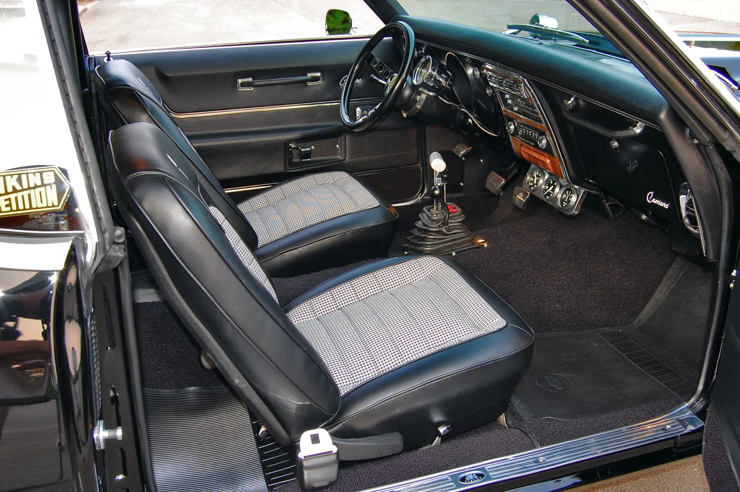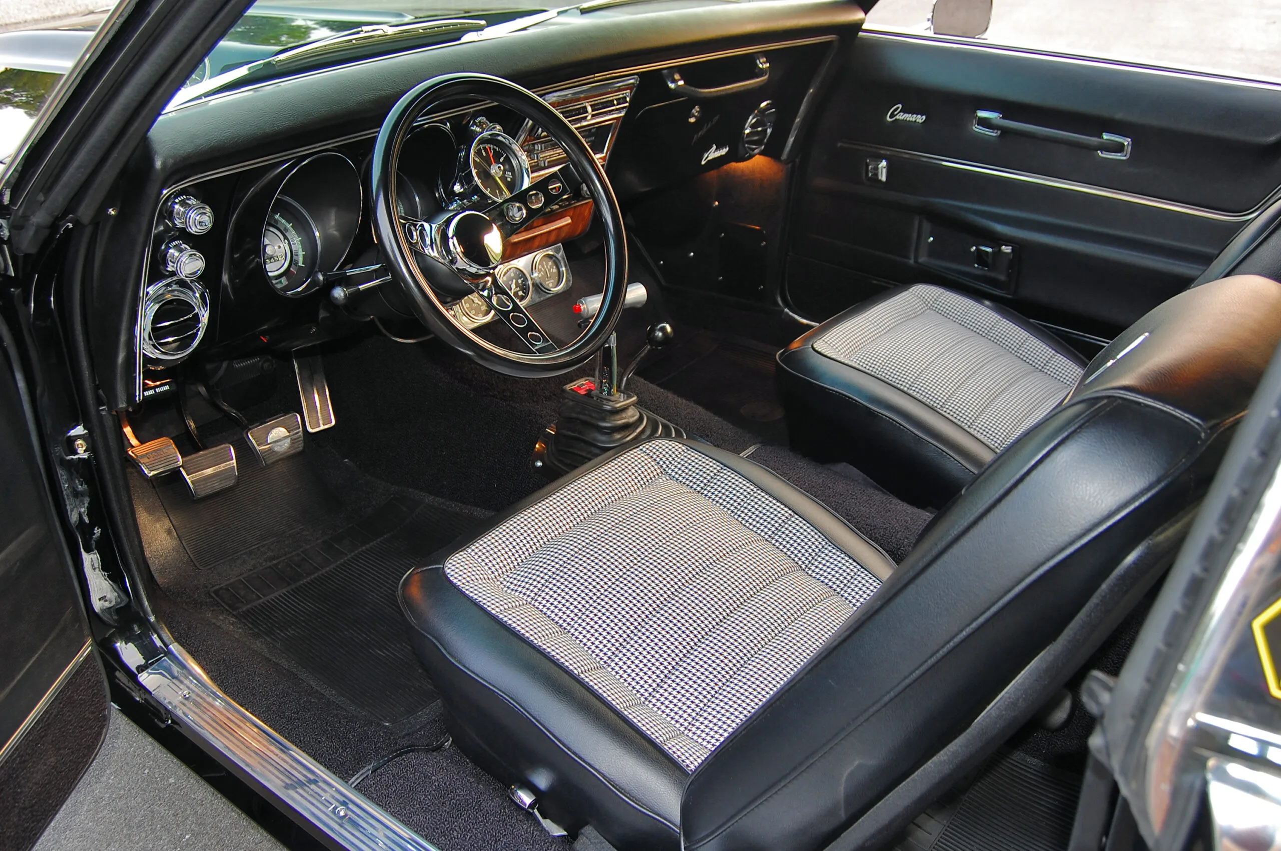 Through the years, Minor’s Camaro had received a few fresh paint jobs, but he wanted perfection this time, and called upon help from Jim Borruff of Maryville, Tennessee. Before the car left for the body shop, Minor modified the roll cage and kept a four-point roll bar, while incorporating a removable bar behind the bucket seats. Borruff performed the necessary bodywork to prepare this Camaro for black paint and blasted on the 2002 Harley Davidson Vivid Black materials just before laying down several coats of clear. Hours of sanding and buffing ensued, as Borruff worked hard to make the car as slick as possible, and he did just that. Then it was time for interior and Charlie Alexander handled the installation of all new components from PUI, which match the original Deluxe Hounds Tooth vinyl coverings. You’ll find a three-gauge cluster beneath the dash and a column-mounted tachometer, all of which is 1969-vintage Stewart Warner equipment.