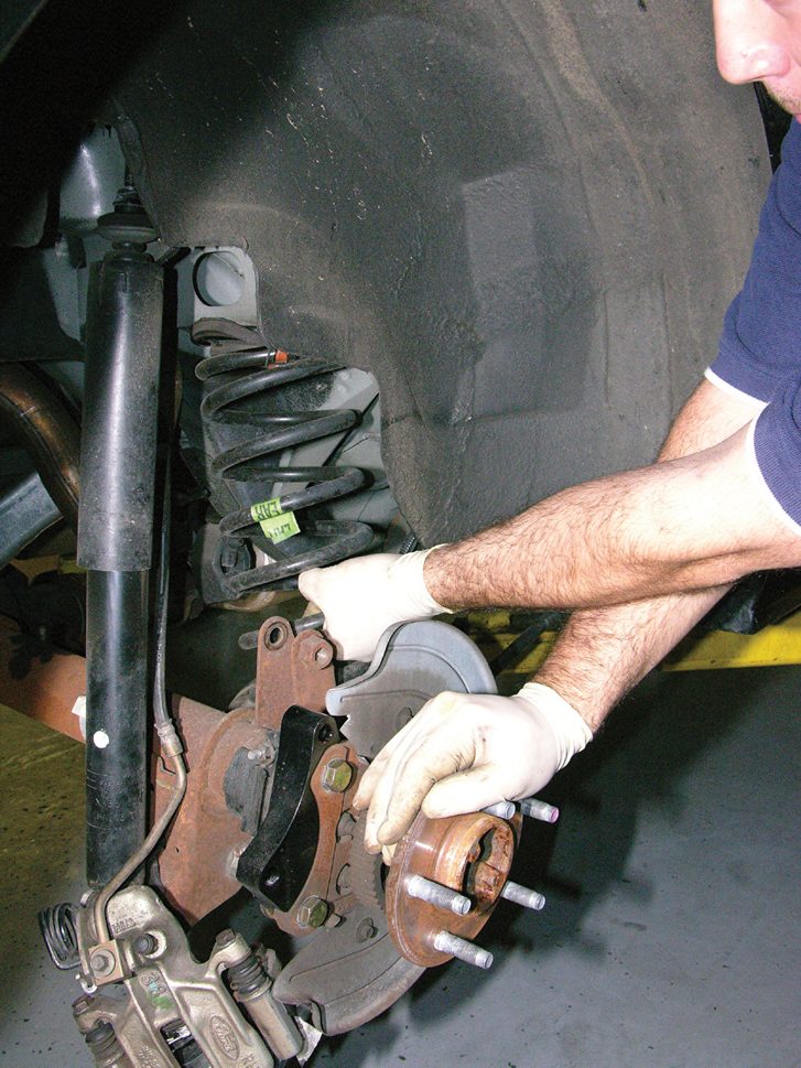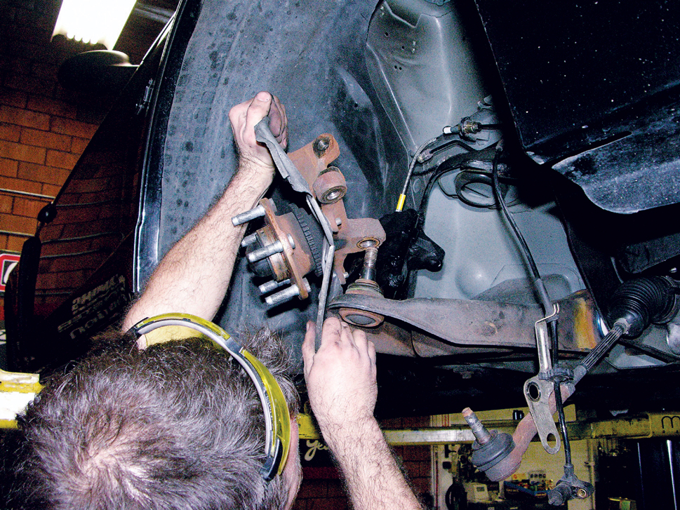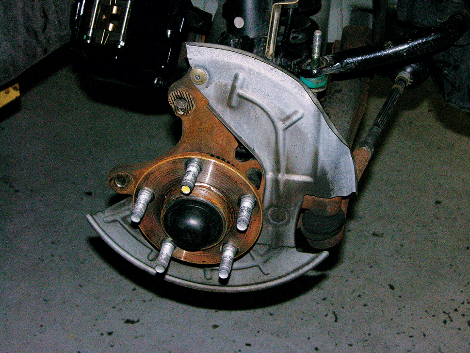 Unbolt and remove the brake caliper and rotor.