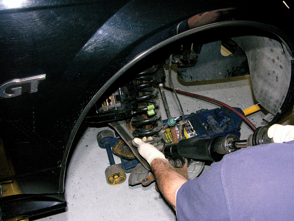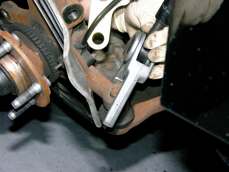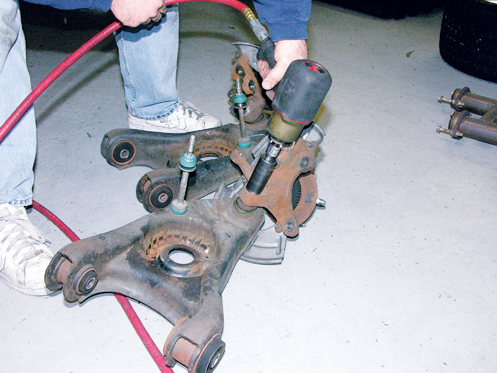 With the control arms removed, disconnect the spindle from the lower control arm.