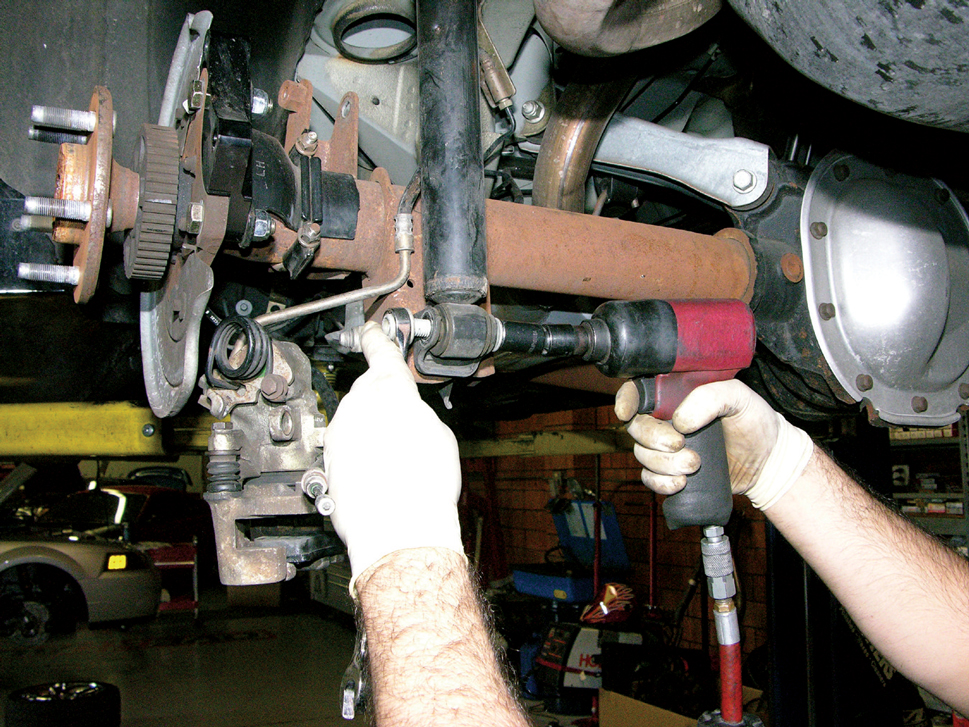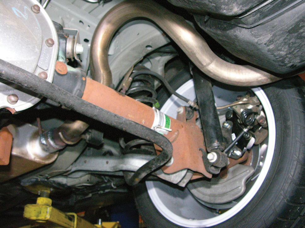 Here’s a glimpse at one side of the rearend before installation of the new Maximum Motorsports suspension.