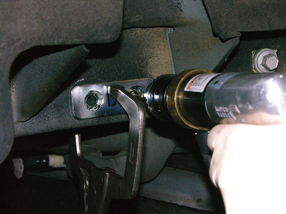 To install the Panhard bar mount to the subframe, you’ll need to hang a plumb bob off the rear edge of the axle and take some measurements. We’ll defer to the instructions on how and where to measure, but you can read the instructions for yourself at MM’s website.