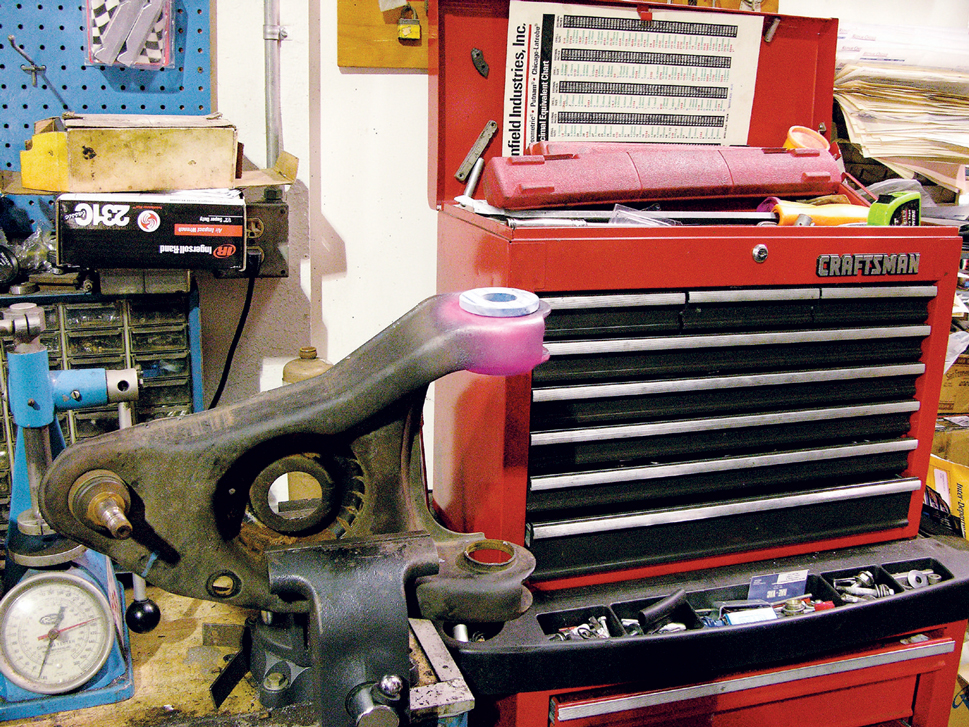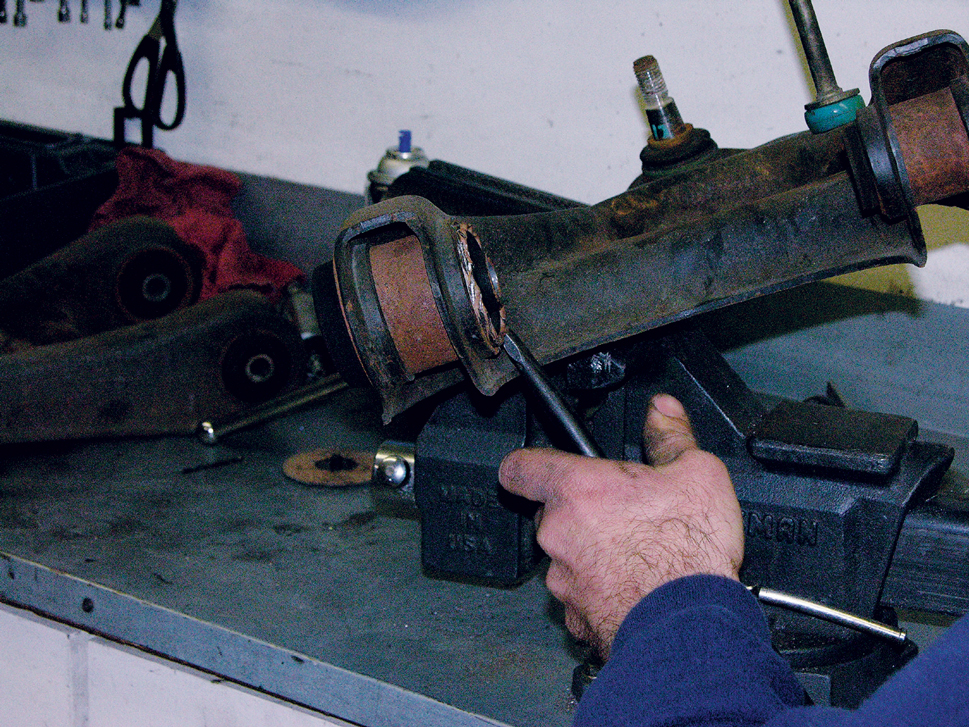 To remove the original bushings, you’ll probably need to place the arm in a vise and then use an air chisel.
