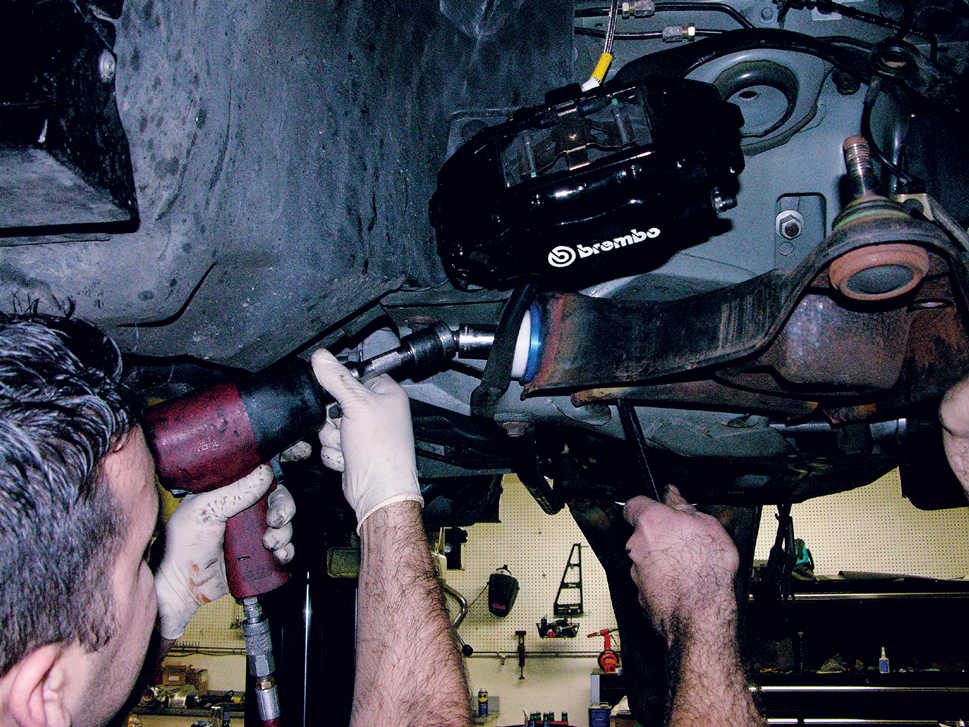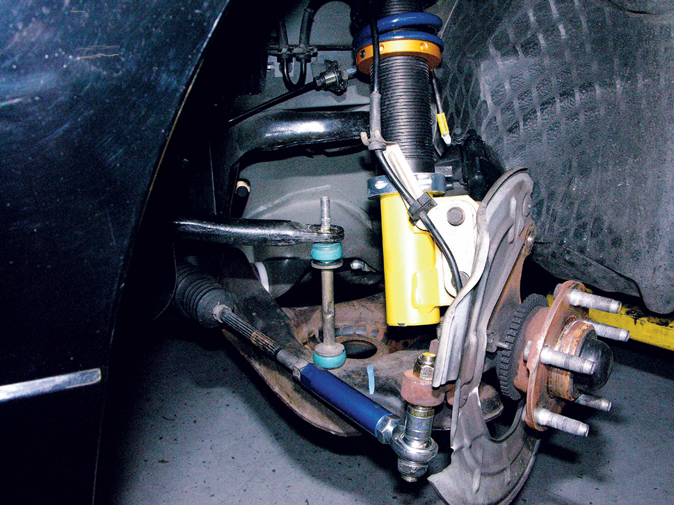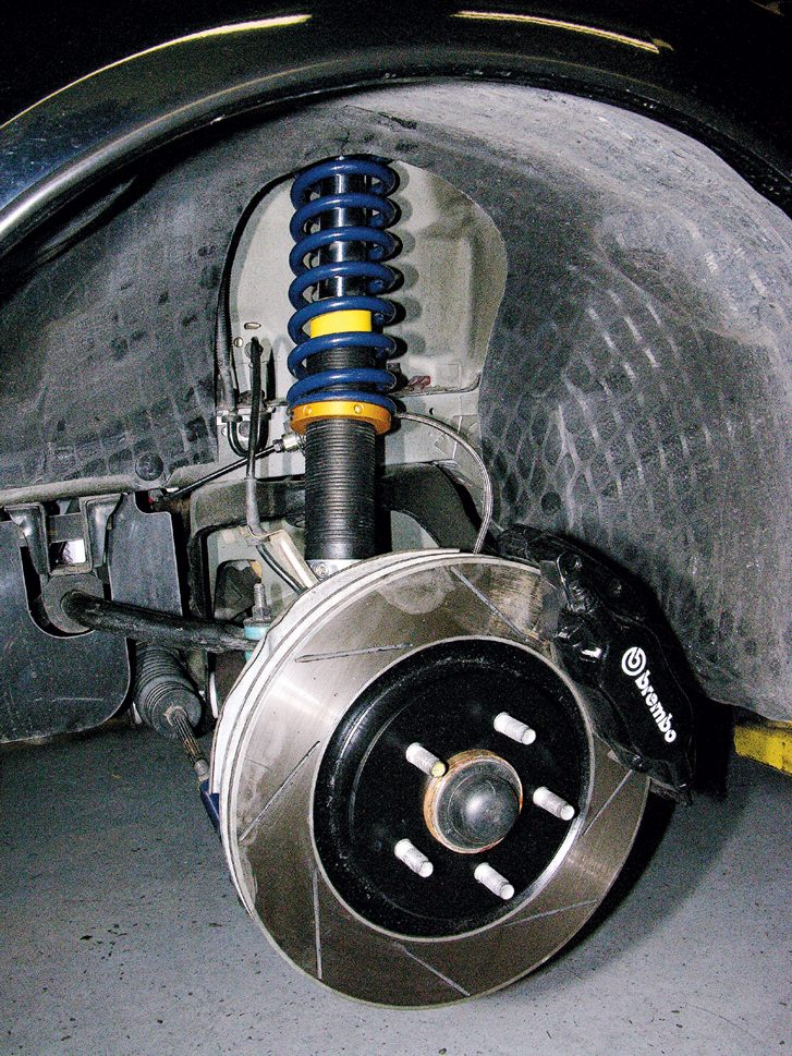 The “before” shot illustrates a pretty typical-looking suspension, with the exception of the Brembo Cobra R brakes.