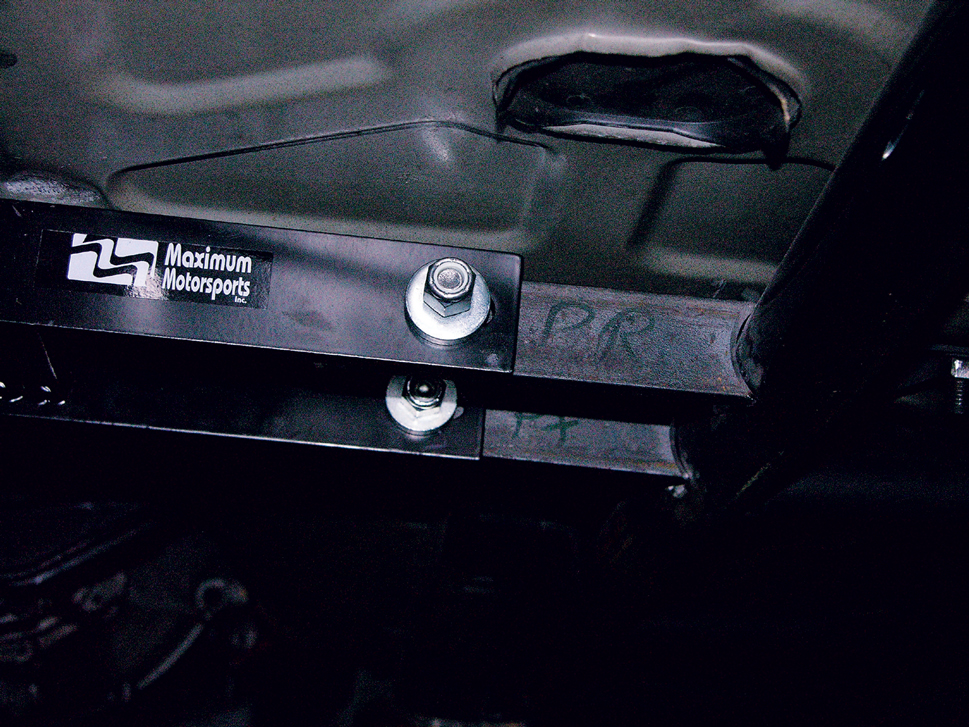 To make the most of the new suspension, the owner took his car to Chicane Sport Tuning (310/782-0063), where he also had installed Maximum’s adjustable rear sway bar and coilover shocks and struts. The front control arms even got Global West Del-A-Lum bushings and an MM bumpsteer kit. In about a day, Chicane transformed the car from stock to a potent street machine that’s ideally suited for weekend open-track events, too.