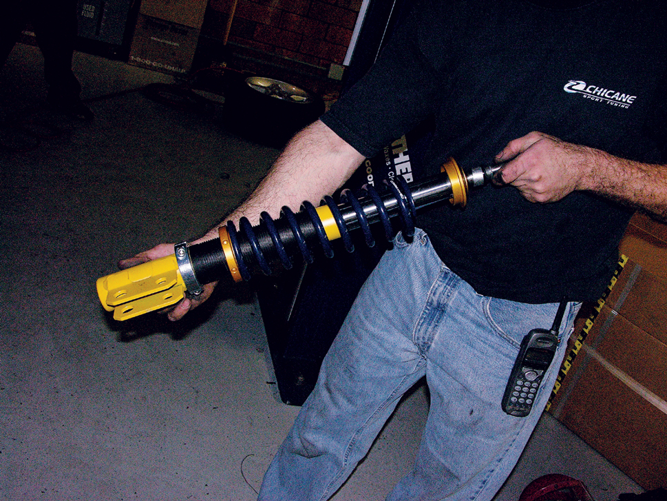 Bolt the coilover to the upper strut mount.