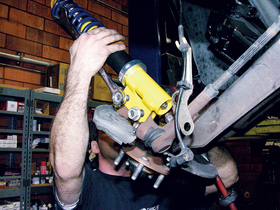 Bolt the coilover assembly to the spindle.
