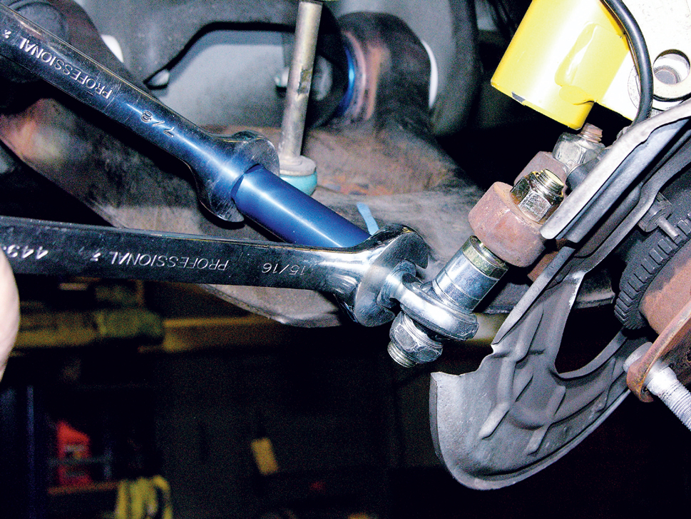 It’s a good idea to install both sway bar arms off the car and on a level surface, because both have to be aligned with one another. If one’s off even by one spline, it can affect your handling.